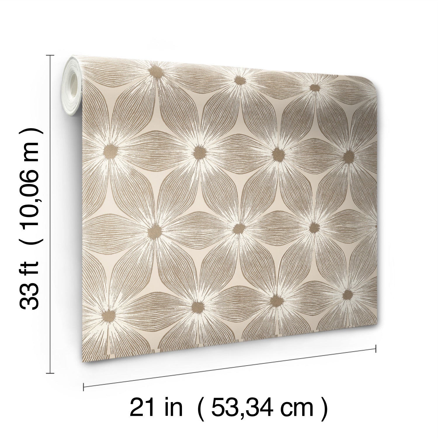 Use:Oversized blossoms, like wildflowers, form an interlocking design against a solid background. The daisy-like blooms have a glistening finish thanks to the metallic inks on Everlasting Wallpaper. This Everlasting Wallpaper measures approximately 21 inches wide by 33 feet long, covering About 57.8 square feet per roll. Durable and easy to remove from primed walls, this friendly to hang unpasted nonwoven wallpaper is created with a special blend of synthetic fibers, making it both easy to hang and tear resistant.