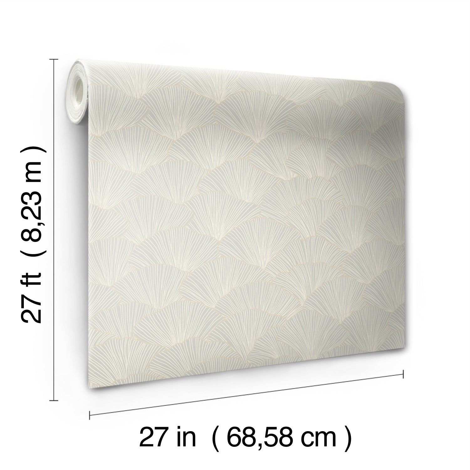 Use:The Ginkgo tree is a living fossil dating back many millions of years; but this design of overlapping fan shaped leaves outlined in metallic ink is perfection in a contemporary setting. This is Luminous Ginkgo Wallpaper. This Luminous Gingko Wallpaper measures approximately 27 inches wide by 27 feet long, covering About 60.8 square feet per roll. Durable and easy to remove from primed walls, this friendly to hang unpasted nonwoven wallpaper is created with a special blend of synthetic fibers, making it both easy to hang and tear resistant.