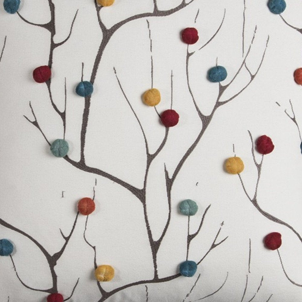 20" White And Black Coral Indoor Outdoor Throw Pillow With Pompoms
