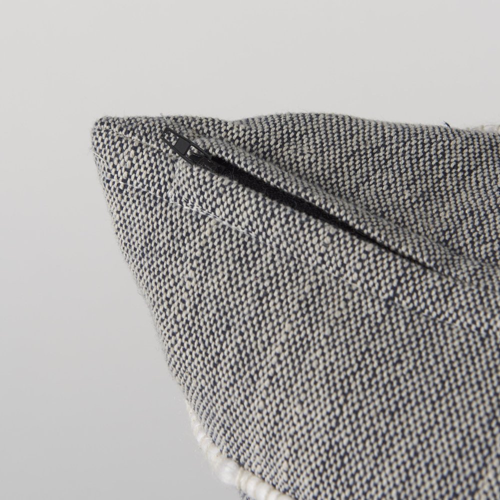 20" Gray and White Striped Linen Throw Pillow Cover With Embroidery and Pom Poms