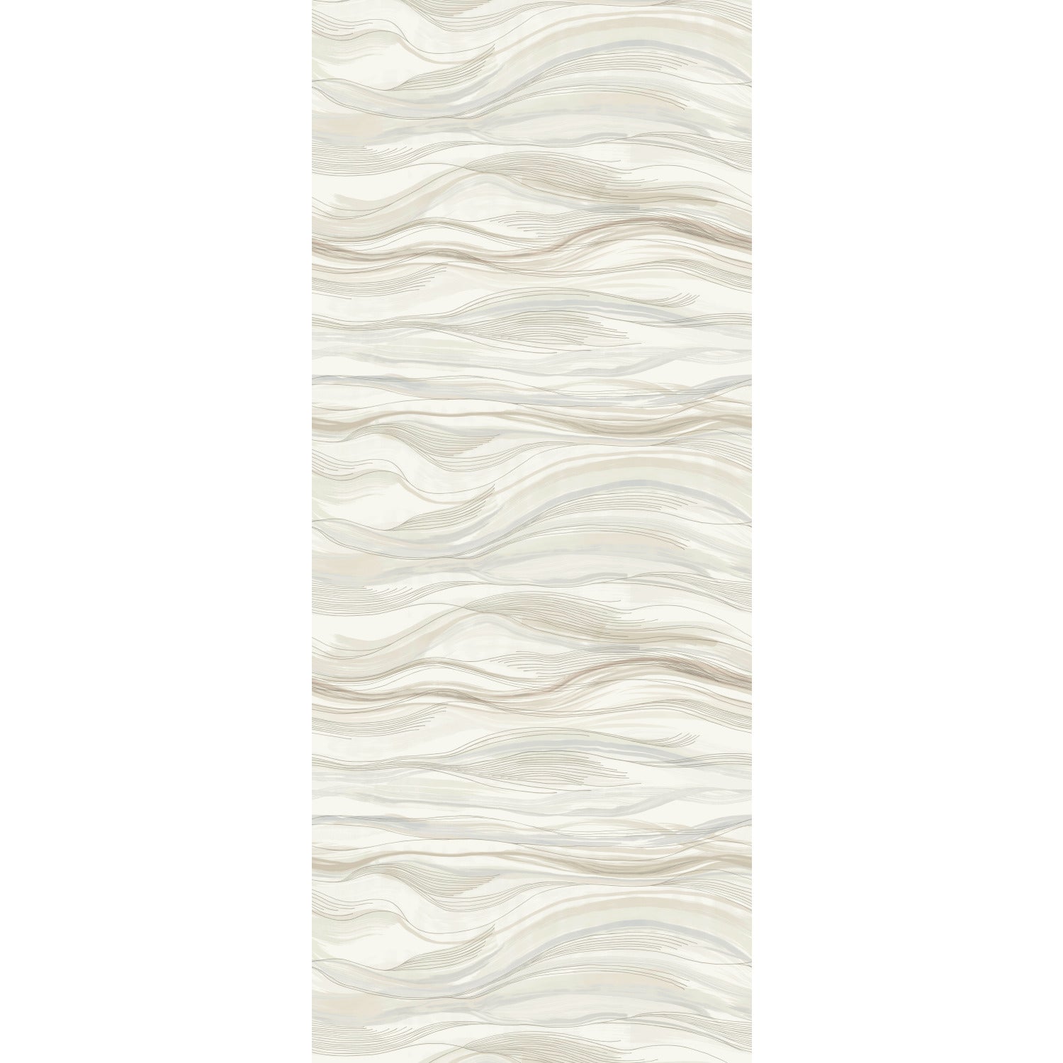 Use:Horizontal waves of color and line drift across a surface of shimmering Mylar in pattern Currents Mural. This Currents Wall Mural measures approximately 50.4 inches wide by 10.2 feet long, covering 1 panel - Measures 4-ft 2-in wide by 10-ft 2-in tall when assembled per roll. The organic texture and shimmering allure which defines the second volume of this sought-after design duology brings new vision and identity to the signature of luxury interiors.