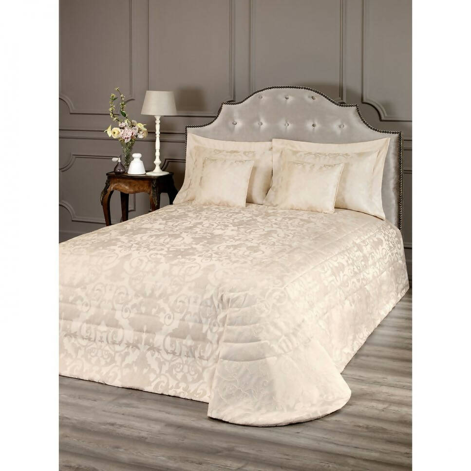 Elegant play of Golden shades will look great in the classic interior of the bedroom, decorated in pastel colors. This collection is made of fabric in a complex 3d jacquard weave with an expressive textured surface, which is pleasant to touch with your hand. The items is decorated with the famous Baroque pattern ƒ?? Baroque monogram, which is based on a stylized image of the acanthus leaf. In ancient Greece, the acanthus was a symbol of luxury and aristocracy. The material of the product is high-quality polyester, which is durable and wear-resistant, easy to care for.