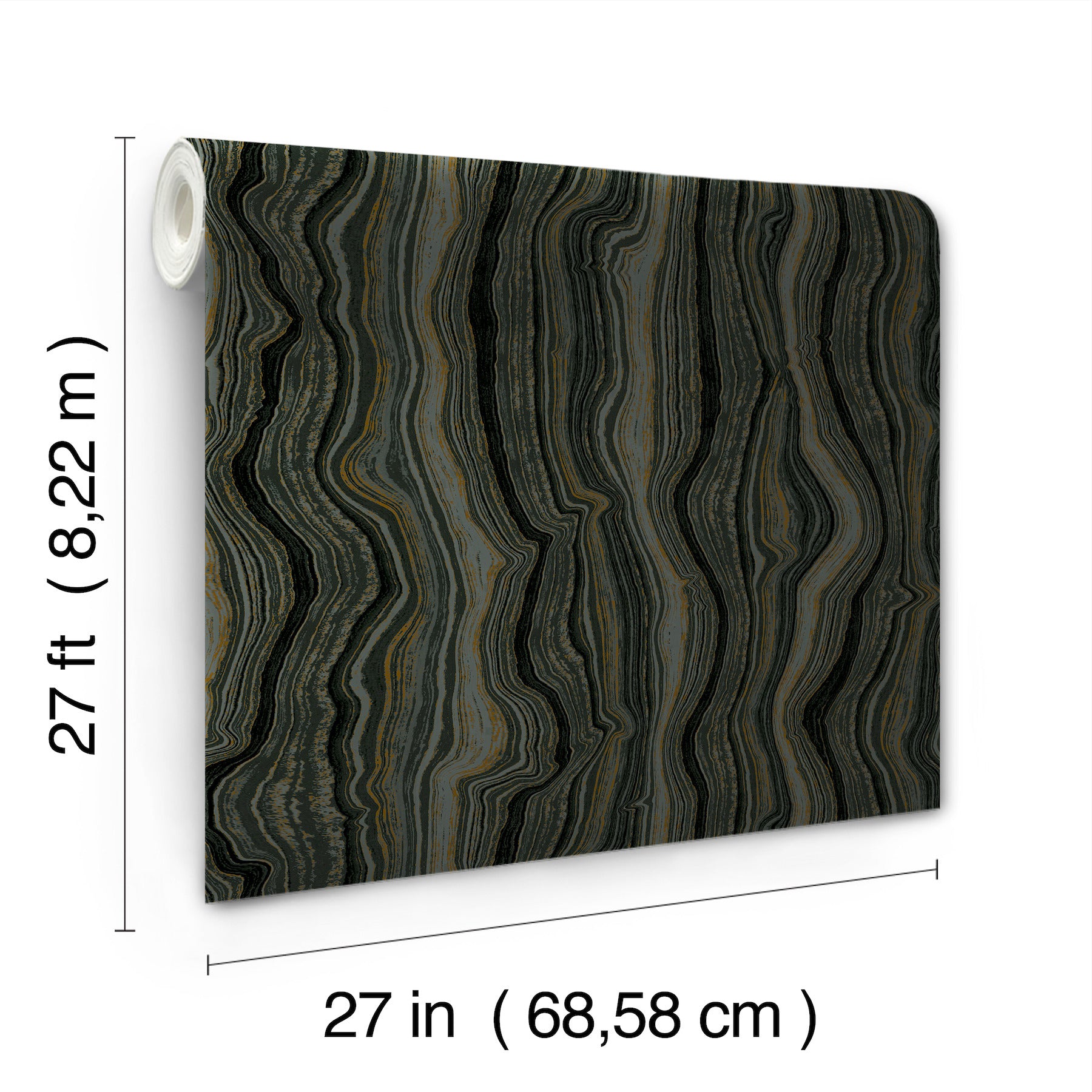 Use:Stratified layers reminiscent of gemstone formations showcase vertical lines threaded with a lustrous mineral shimmer in this earthy, contemporary geometric, featured in black and gold metallic. This Mineral Shimmer Wallpaper measures approximately 27 inches wide by 27 feet long, measuring approximately 60.8 square feet per roll. Candice Olson?s signature aesthetic defines timeless modern style. Decadence Second Edition features a gallery of glamorous specialty and luminous metallics dedicated to luxury living.