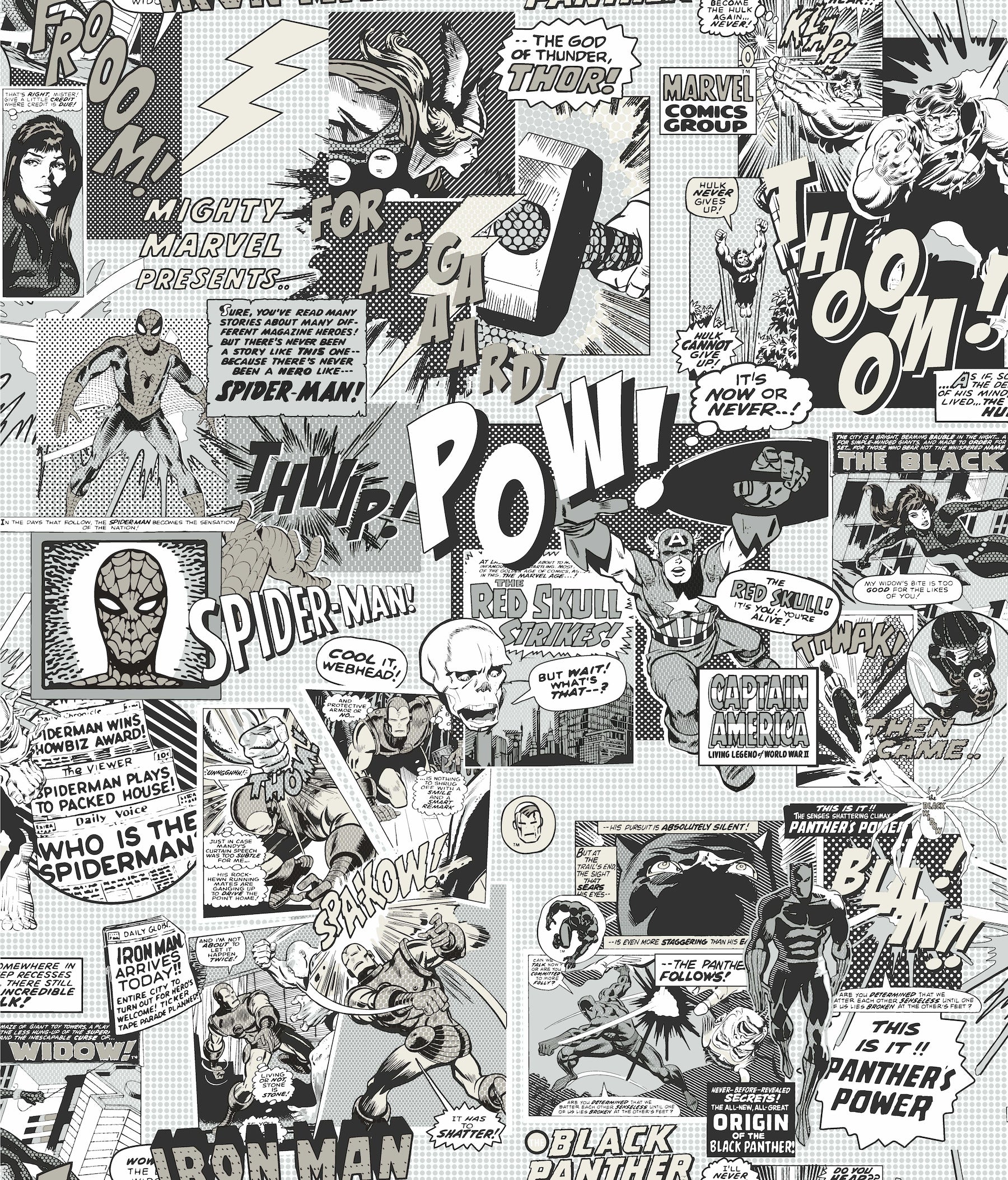 Pattern: DI0946 / Marvel Comics Pow! Black and White Wallpaper