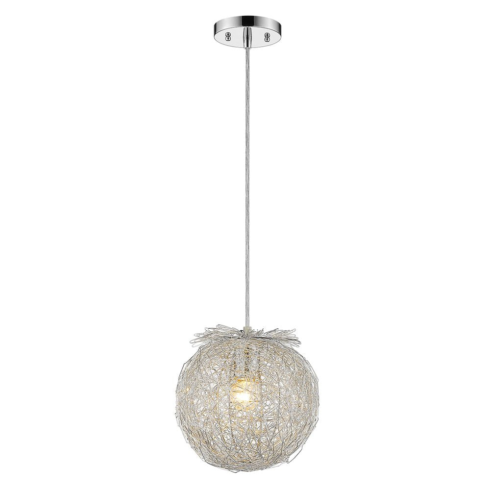 Distratto 1-Light Polished Chrome Pendant Enmeshed Aluminum Wire Shade (12")