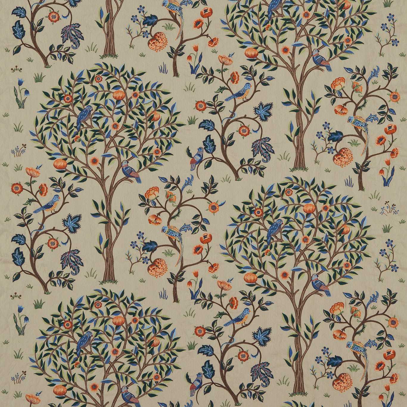 Use:Kelmscott Tree is a new design by Alison Gee. Inspired by Morris bed curtains at his home Kelmscott Manor which were embroidered by May Morris in 1891 Kelmscott Tree has been painted in the Morris studio and adapted into a beautiful embroidery of trees birds and flowers. It is also available as a print.
