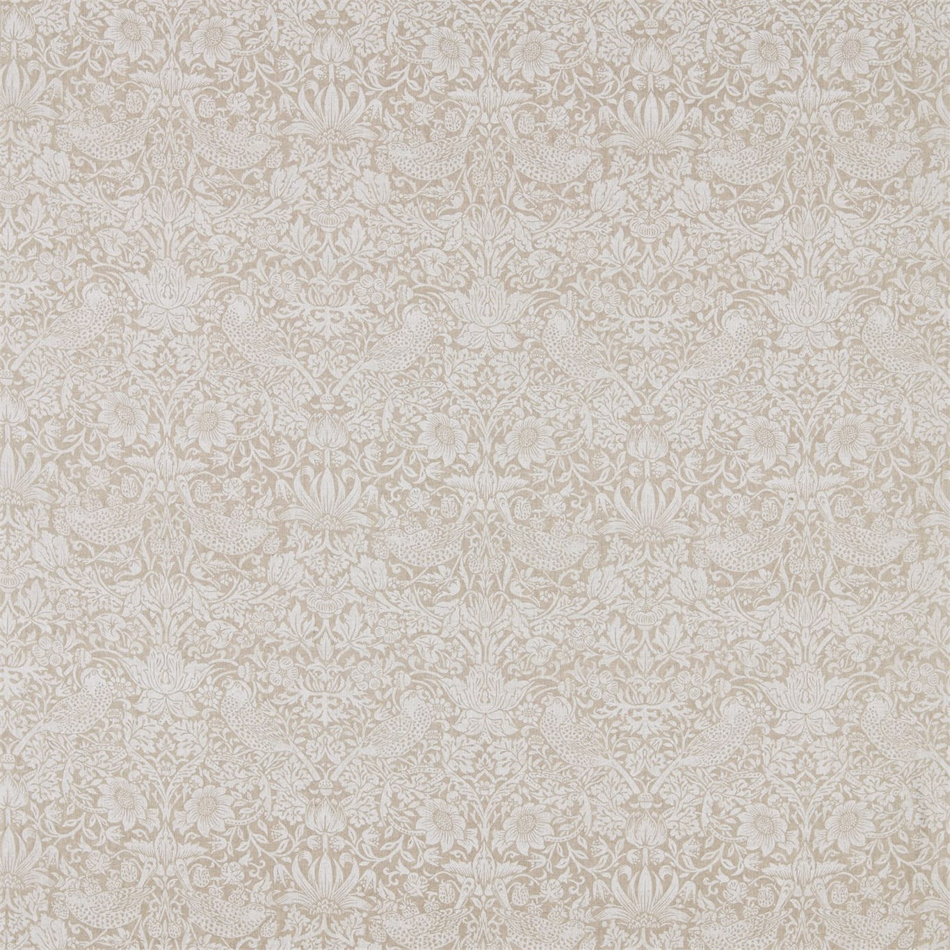 MORRIS & CO Pure Strawberry Thief Fabric Birds Flax - DMPU226061