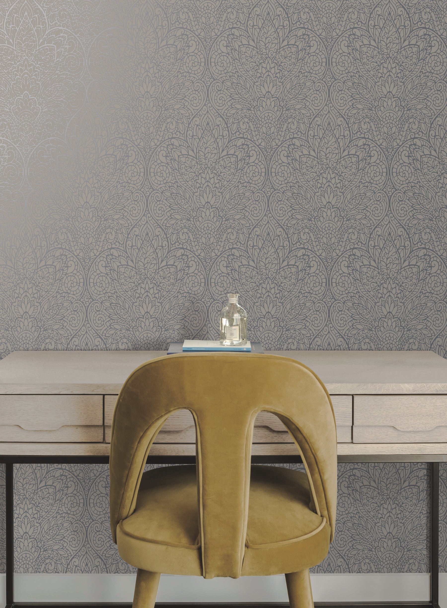 York Wallcoverings Candice Olson After 8 Paradise Dark Taupe and Silver Wallpaper Damasks Neutrals - DT5012