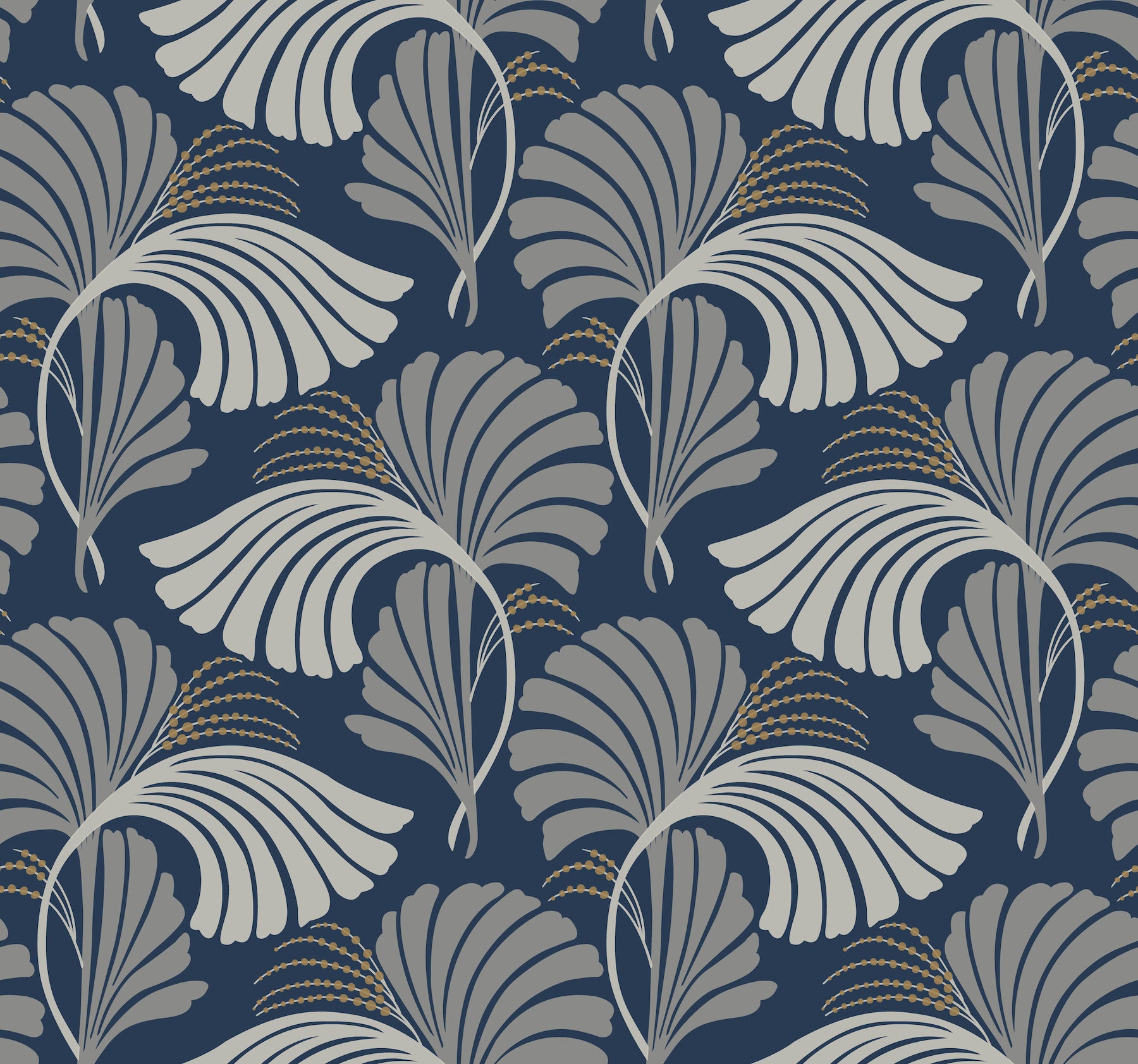 Pattern: DT5133 / Dancing Leaves Navy Wallpaper