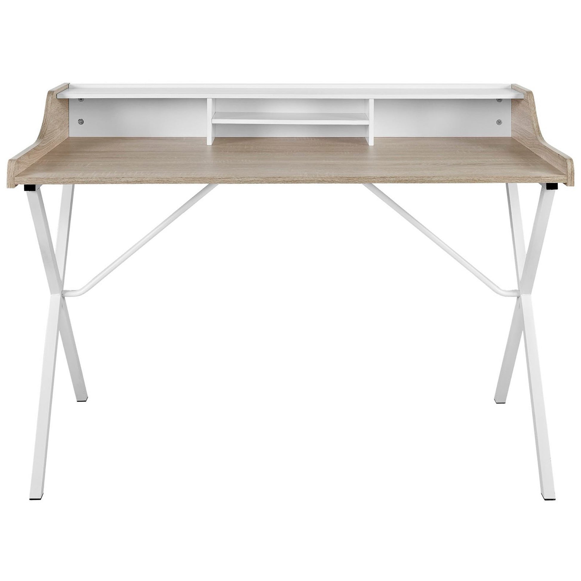 Use:The problem with work desks is that while they do much, they often say little. Bin corrects the issue of desk apathy by helping you keep everything you need in plain sight. Whether you plan to use Bin to answer to your homework, pen diary entries, or embark on other creative pursuits with crafting supplies, you can say goodbye to clunky storage and filing drawers that rarely get used anyway. Bin is constructed with a wood-grained melamine top and a powder-coated white metal A-frame design. A pleasant addition to your contemporary or traditional d?cor, Bin also comes with four-foot pads to prevent scratching.,Contemporary student desk/table