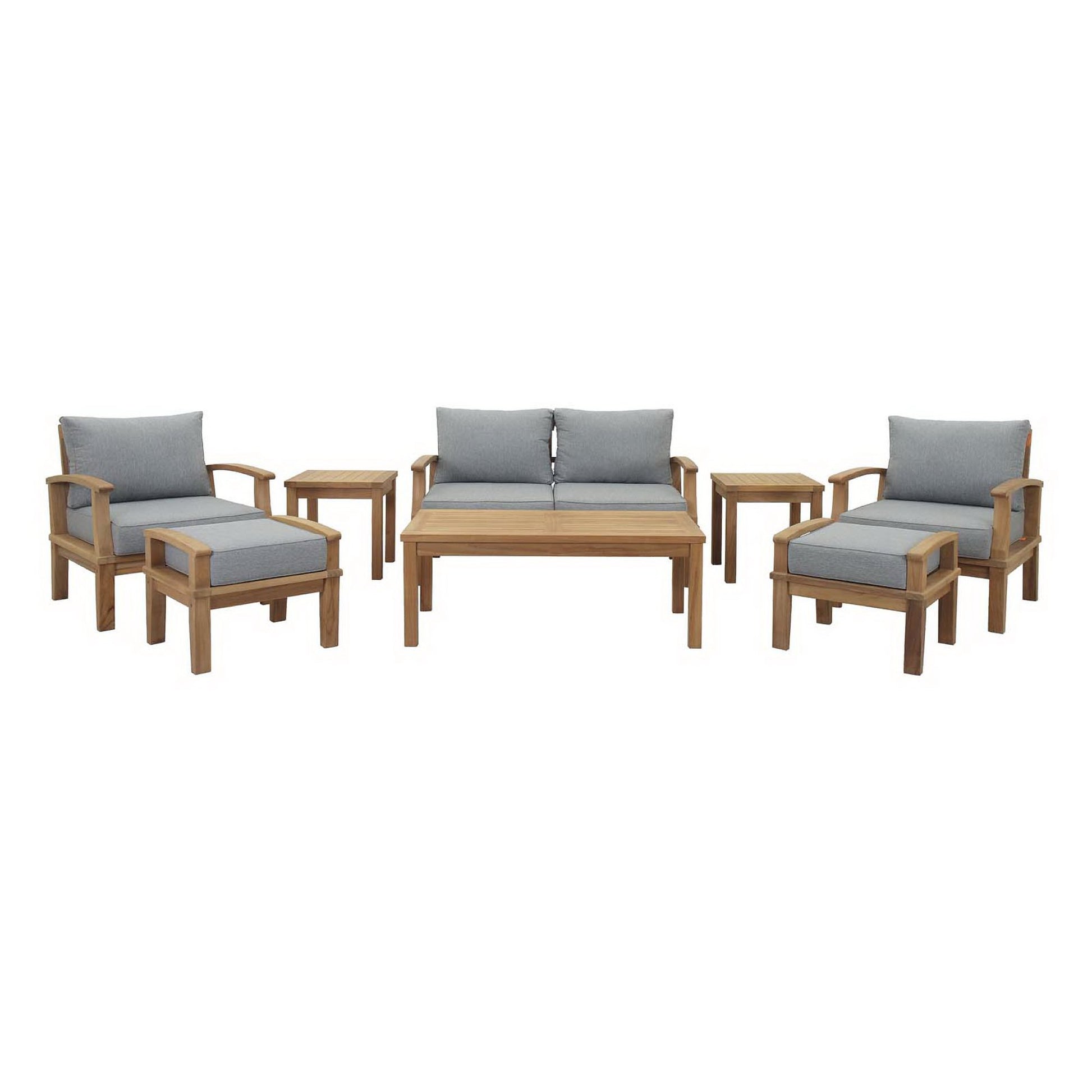 Modway - Marina 8 Piece Outdoor Patio Teak Set by Modway Outdoor Furniture Sofa Sectionals Gray - EEI-1471-NAT-GRY-SET