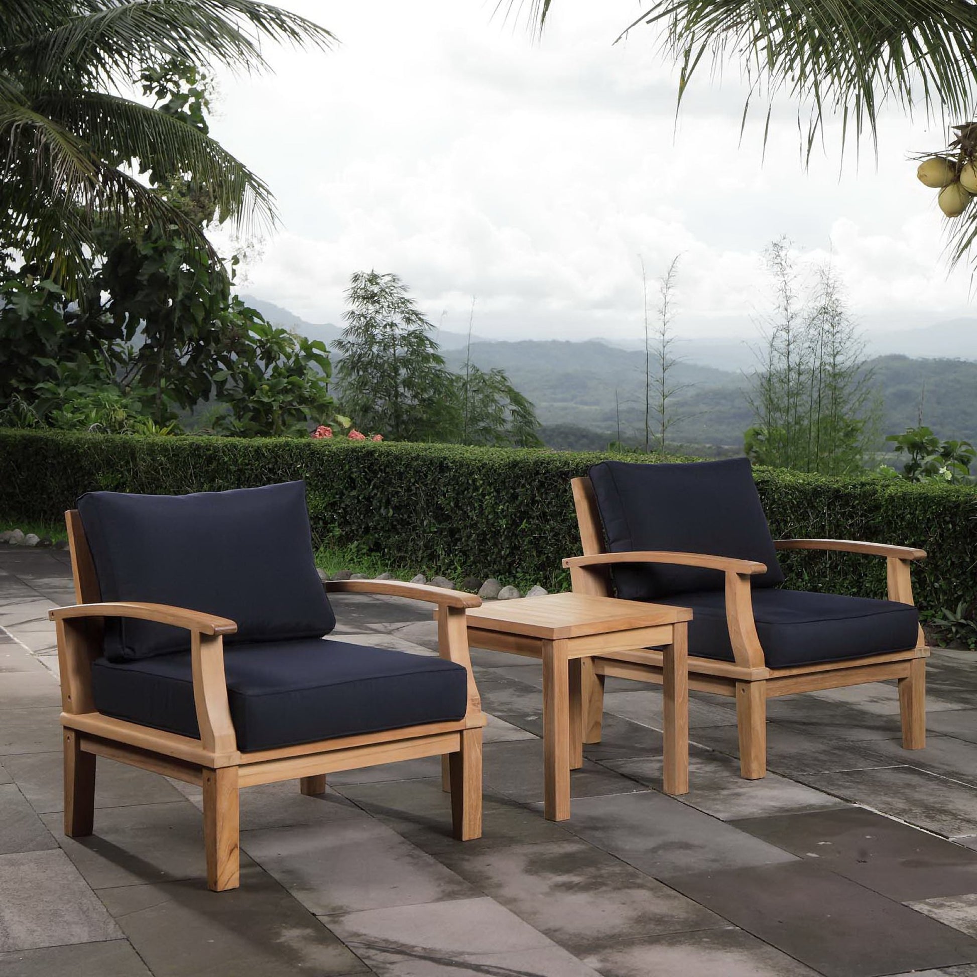 Modway - Marina 3 Piece Outdoor Patio Teak Set by Modway Outdoor Furniture Sofa Sectionals Blue - EEI-1487-NAT-NAV-SET