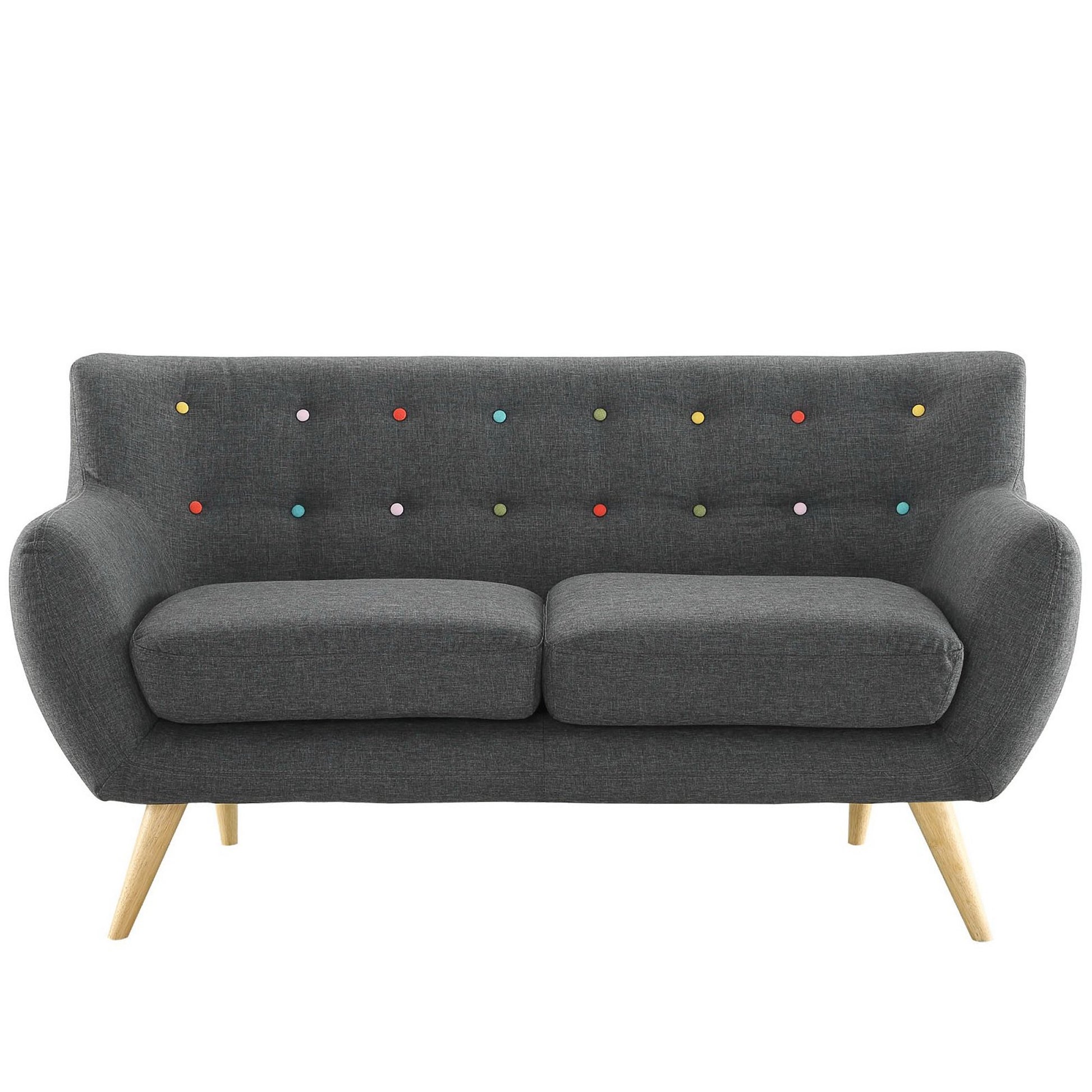 Use:Take notice and engage your sensibilities with this plush dual cushion, organically shaped loveseat. Remark is gracefully positioned on solid natural wood dowel legs designed according to mid-century sentiments. Whether settling in with coffee and brunch, or entering a spirited discussion with friends, Remark?s polyester upholstery, two rows of finely stitched back seat buttons, and organic form ensure an eye-catching appeal at every turn. Bring depth and modernity to your contemporary living room or lounge area with the Remark mid-century modern style loveseat.,Mid-century modern style Loveseat