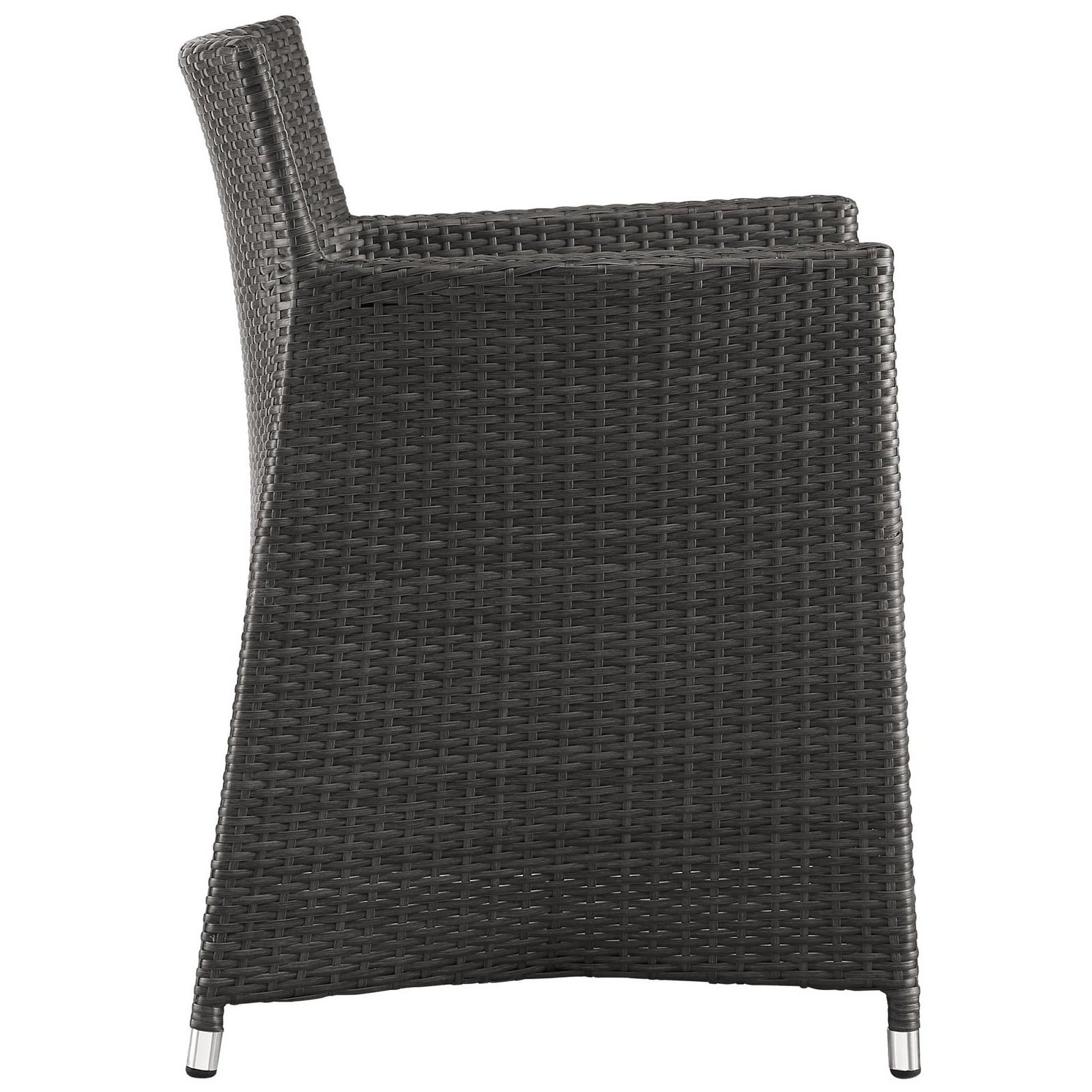 Use:Converge for great moments spent outdoors with the Junction Outdoor Patio Dining Furniture Set. Junction Patio Furniture is a proudly designed set with an audacious style that encourages lively repartee. Covered in a synthetic rattan weave, all-weather machine washable seat cushion, and powder-coated aluminum frame with plastic foot glides, Junction Outdoor Patio set does not require assembly and comes ready for contemporary patios, backyards, poolside, and other outdoor lounge areas.,Modern Outdoor Dining Set