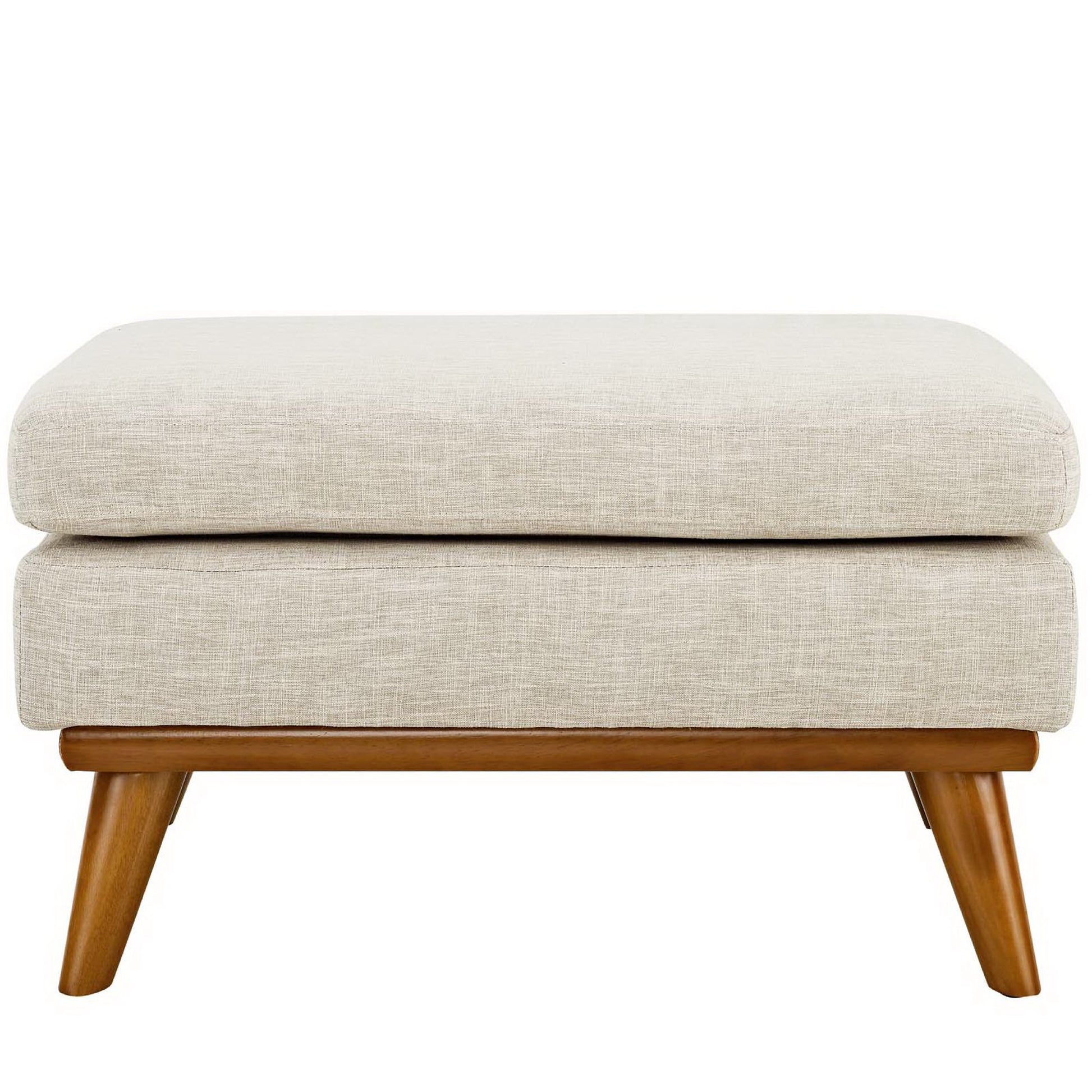 Use:Gently sloping curves and plush cushion create a favorite lounging spot. Whether relaxing after a long day at work, settling in with coffee and brunch, or entering a spirited discussion with friends, the Engage ottoman is a welcome presence in your home. Rubberwood legs and frame supply a solid base to this quality upholstered fabric piece.