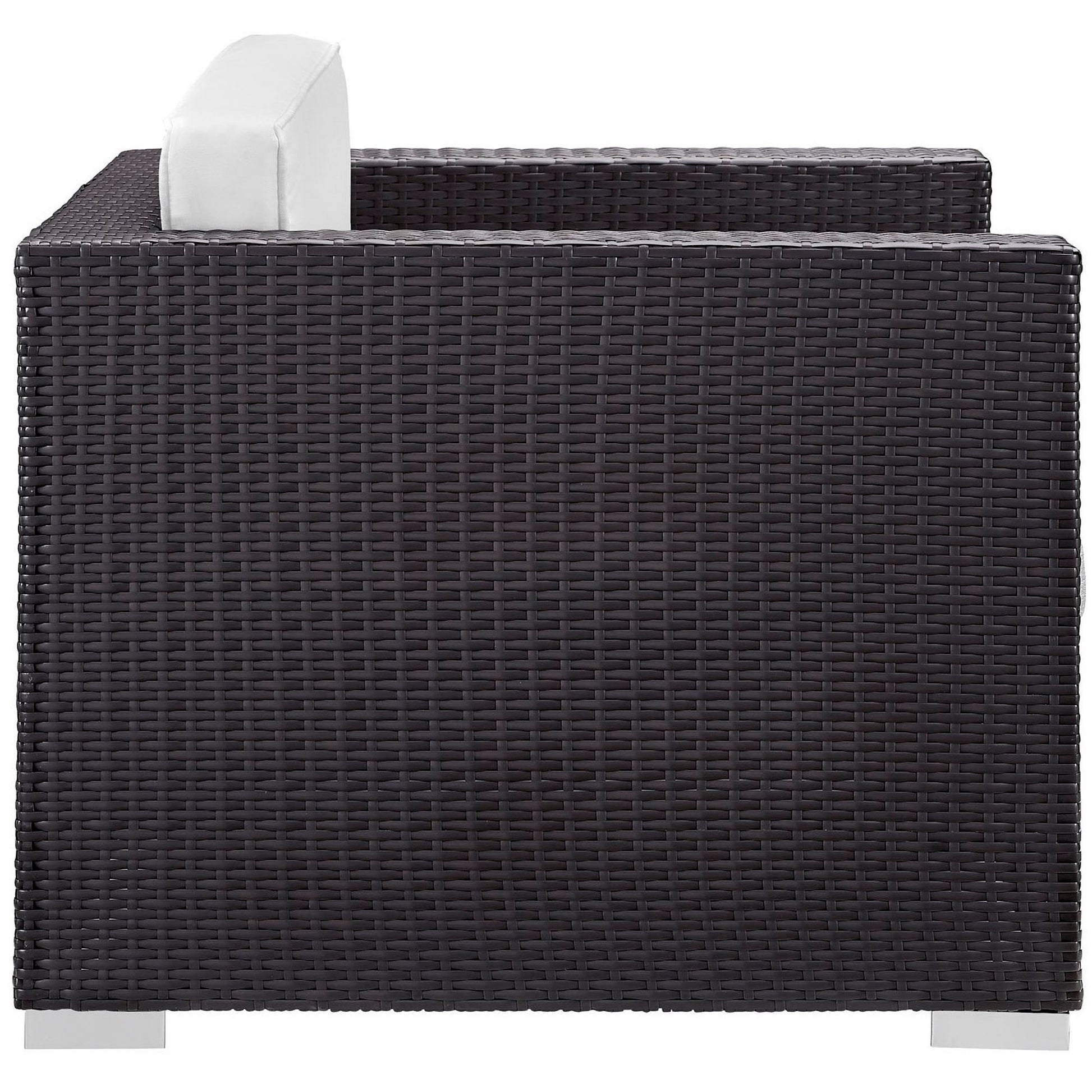 Use:Gather stages of sensitivity with the Convene Outdoor Sectional series. Made with a synthetic rattan weave and a powder-coated aluminum frame, Convene Patio Lounge Armchair and Ottoman set is a versatile outdoor collection that shifts and combines according to the spontaneous needs of the moment. Outfitted with all-weather fabric cushions, this deck chair leaves a positive impression on friends and family while enhancing your patio, backyard, or poolside repast in this series of palpable distinction. This installment of the series is an Outdoor Patio Sectional Sofa Set.