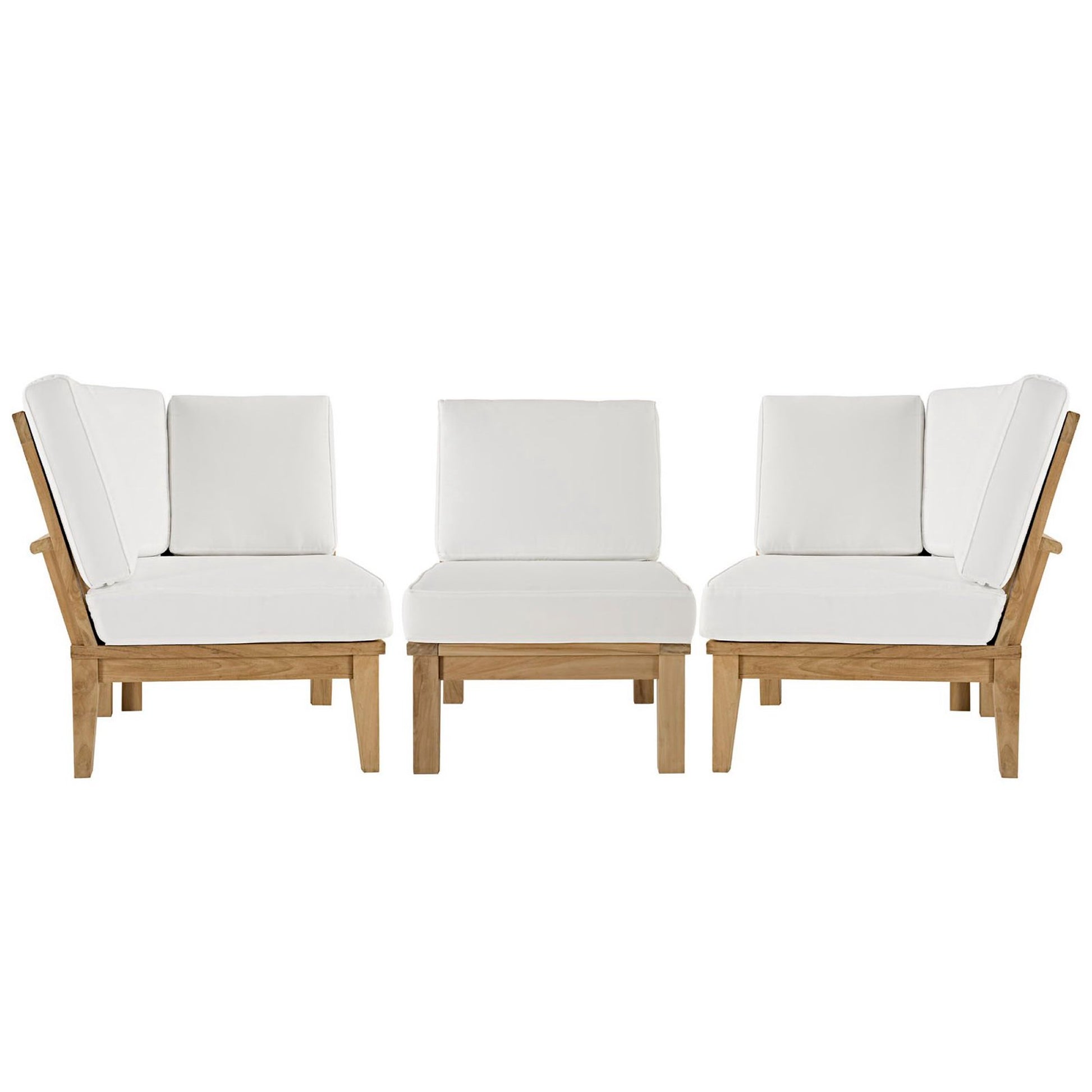 Modway - Marina 3 Piece Outdoor Patio Teak Set by Modway Outdoor Furniture Sofa Sectionals White - EEI-1820-NAT-WHI-SET