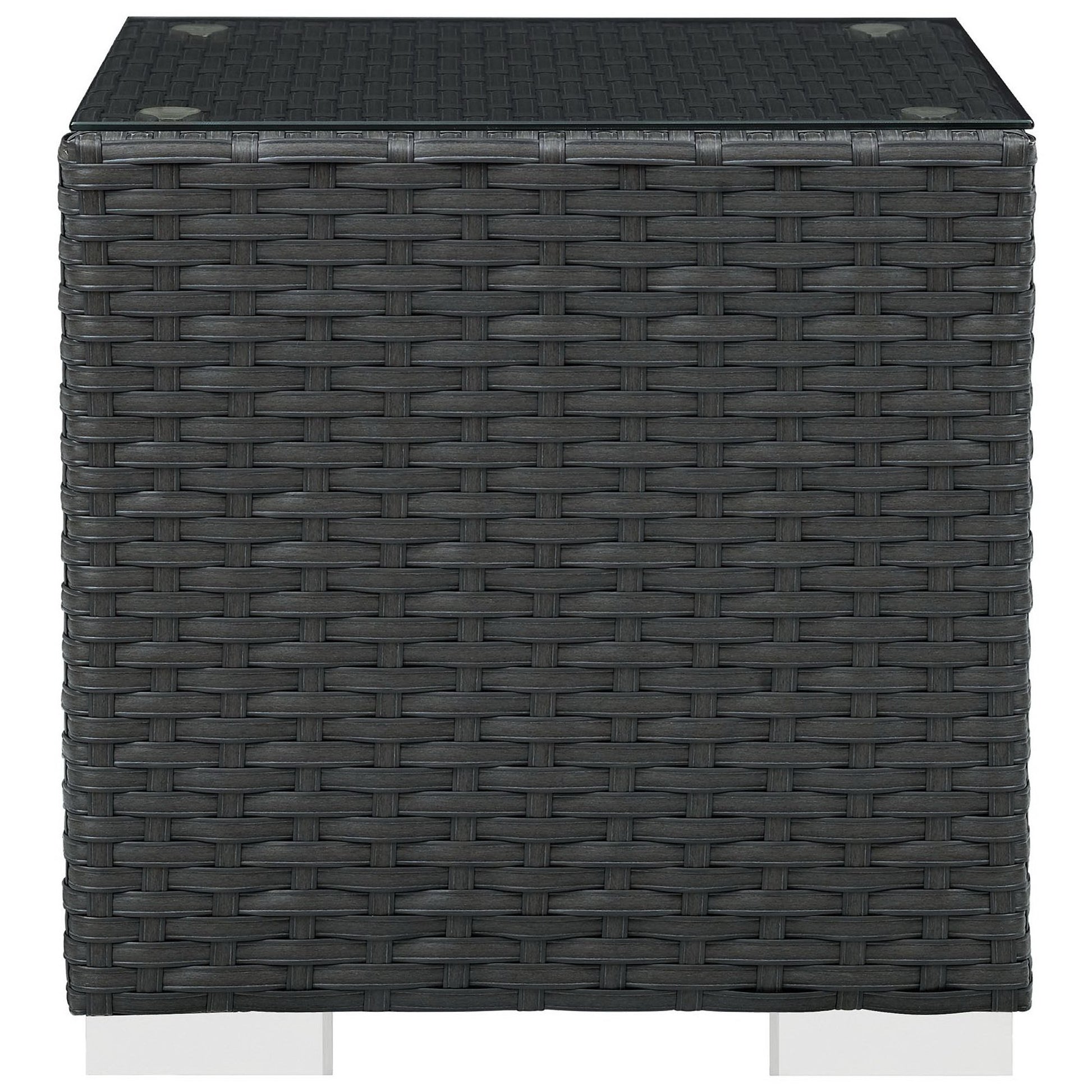 Use:Outfit your patio with the imaginative Sojourn Outdoor Patio Furniture series. The Sojourn Patio Side End Table offers a robust seating experience that easily rearranges according to usage. Outfitted with synthetic rattan weave, UV protection, powder-coated aluminum frame, immensely enjoy your outdoor time with an outdoor end table that enhances patio, backyard, or poolside areas. This installment of the series is an Outdoor Patio End Table.,Synthetic Rattan Weave