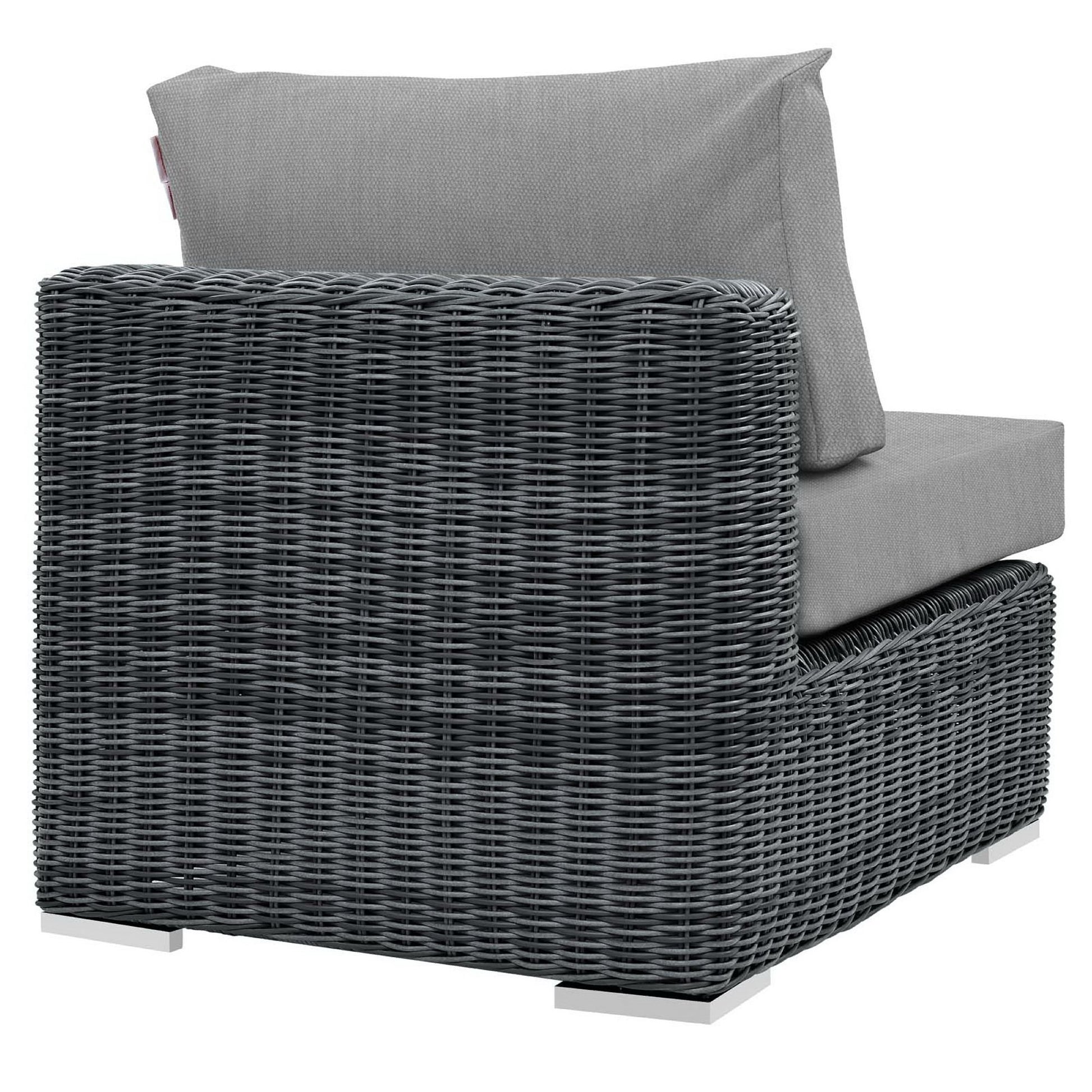 Use:Experience the outdoors with exceptional comfort and quality. Summon Outdoor Patio Armless Sectional Sofa Chair offers an exquisite two-tone synthetic rattan weave, plush all-weather cushions with industry-leading Sunbrella? fabric, UV protection, and a sturdy powder-coated aluminum frame. Featuring an elegant modern look, Summon Patio Armless Sofa Chair is part of an avant-garde outdoor sectional series well-equipped for enhancing patio, backyard, or poolside gatherings. This installment of the series is an Outdoor Patio Armless Sofa Chair.,Long Lasting Sunbrella? Fabric