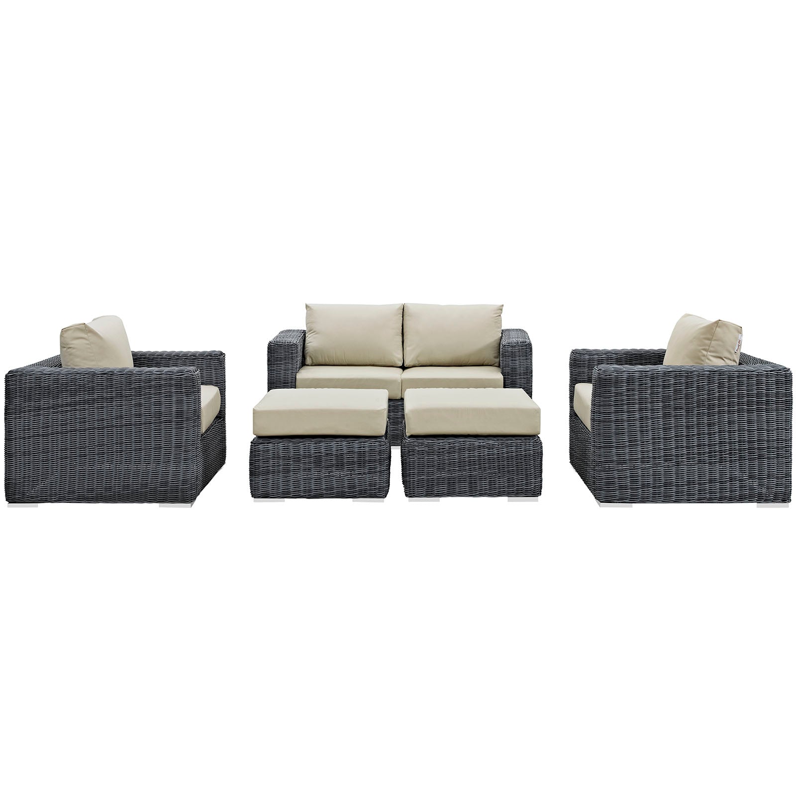 Modway Outlet Summon 5 Piece Outdoor Patio Sunbrella? Sectional Set by Modway Outdoor Furniture Furniture Canvas Antique Beige - EEI-1893-GRY-BEI-SET