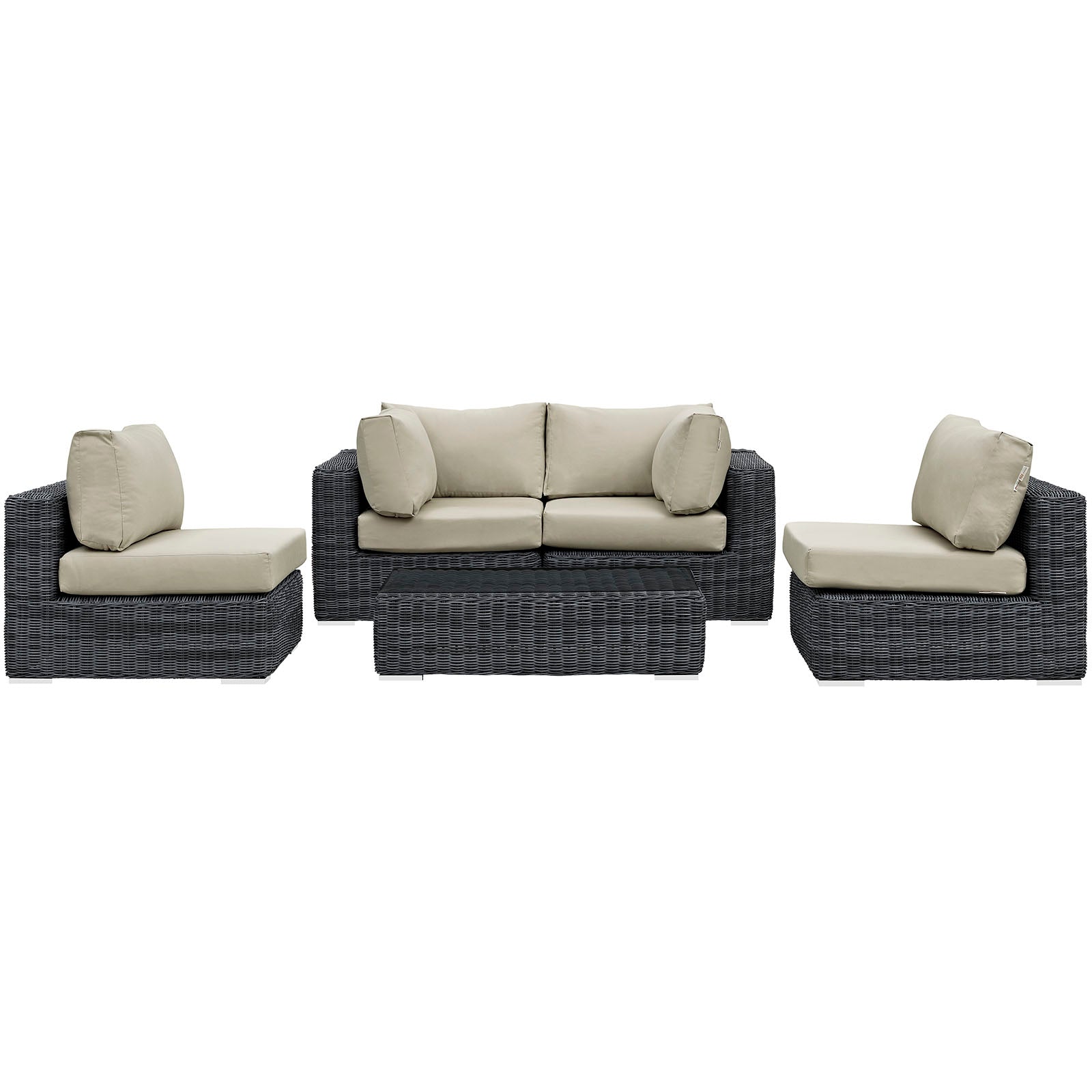 Modway Outlet Summon 5 Piece Outdoor Patio Sunbrella? Sectional Set by Modway Outdoor Furniture Furniture Canvas Antique Beige - EEI-1896-GRY-BEI-SET