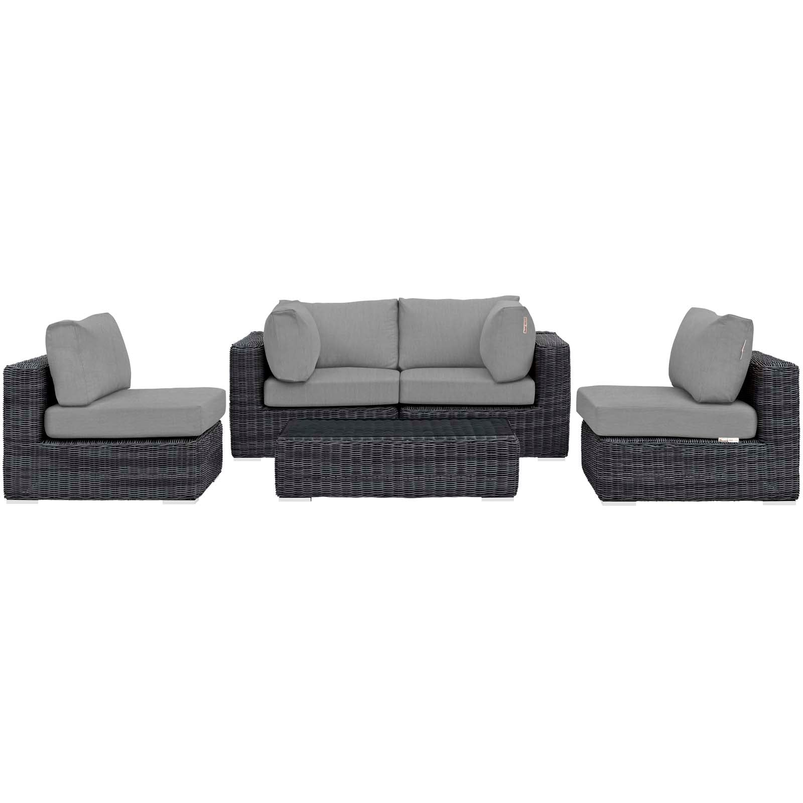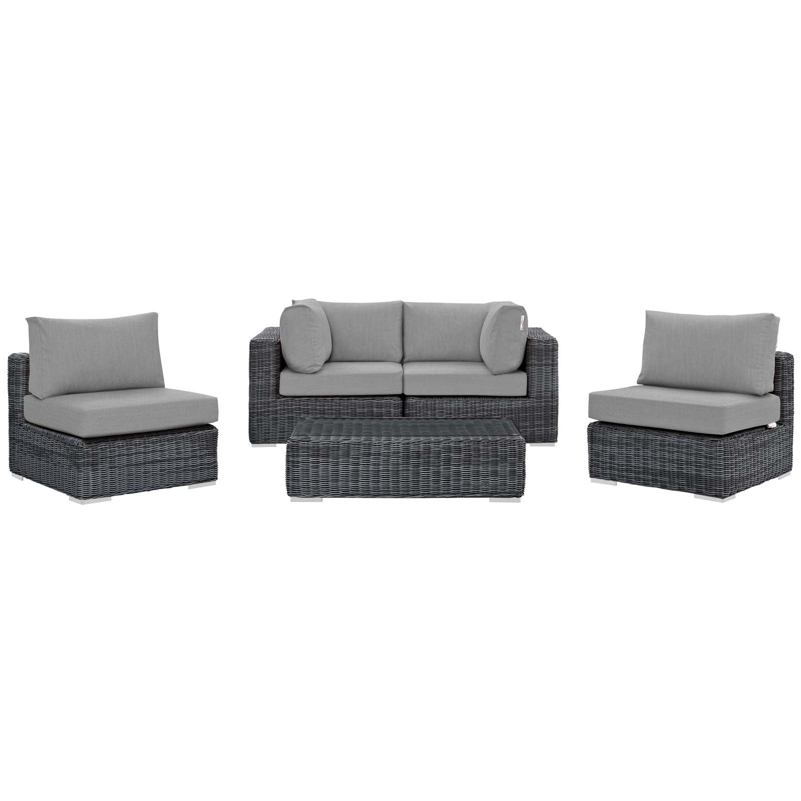 Modway Outlet Summon 5 Piece Outdoor Patio Sunbrella? Sectional Set by Modway Outdoor Furniture Furniture Canvas Gray - EEI-1896-GRY-GRY-SET