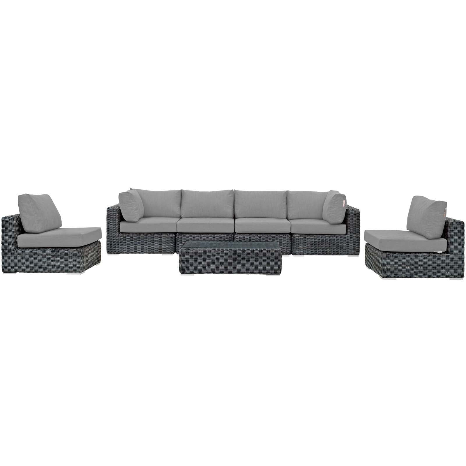 Modway Outlet Summon 7 Piece Outdoor Patio Sunbrella? Sectional Set by Modway Outdoor Furniture Furniture Canvas Gray - EEI-1897-GRY-GRY-SET