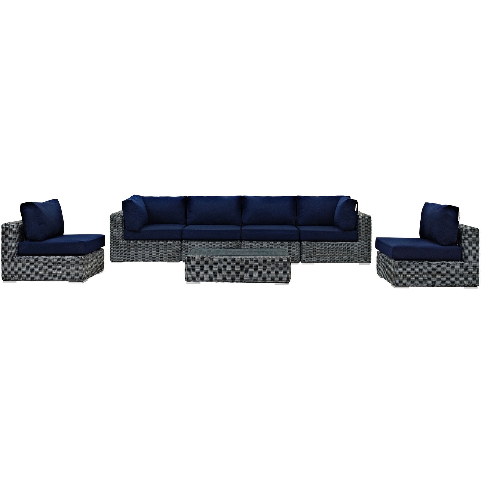 Modway Outlet Summon 7 Piece Outdoor Patio Sunbrella? Sectional Set by Modway Outdoor Furniture Furniture Canvas Navy - EEI-1897-GRY-NAV-SET