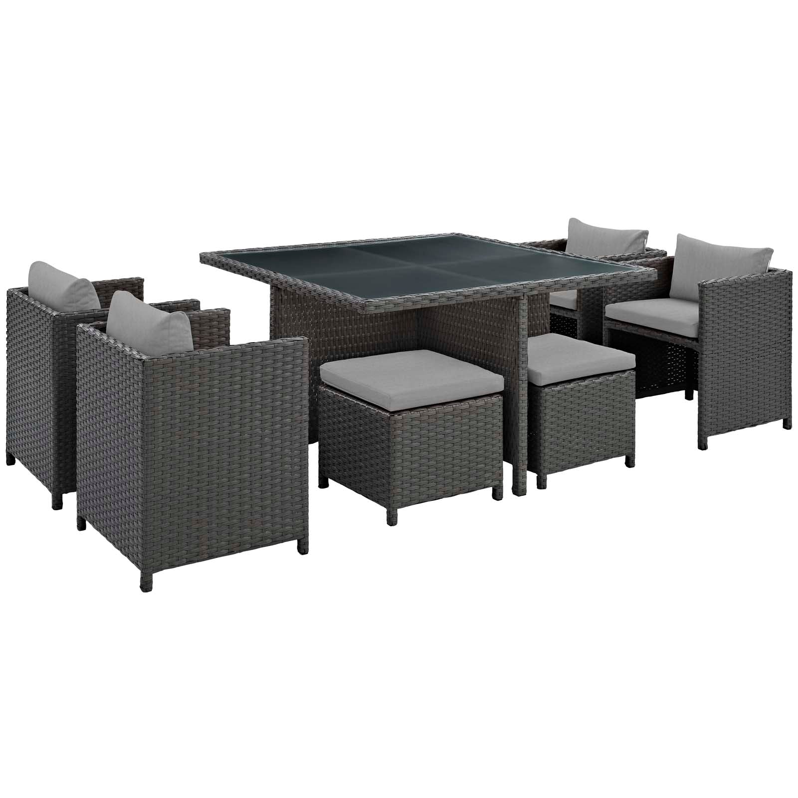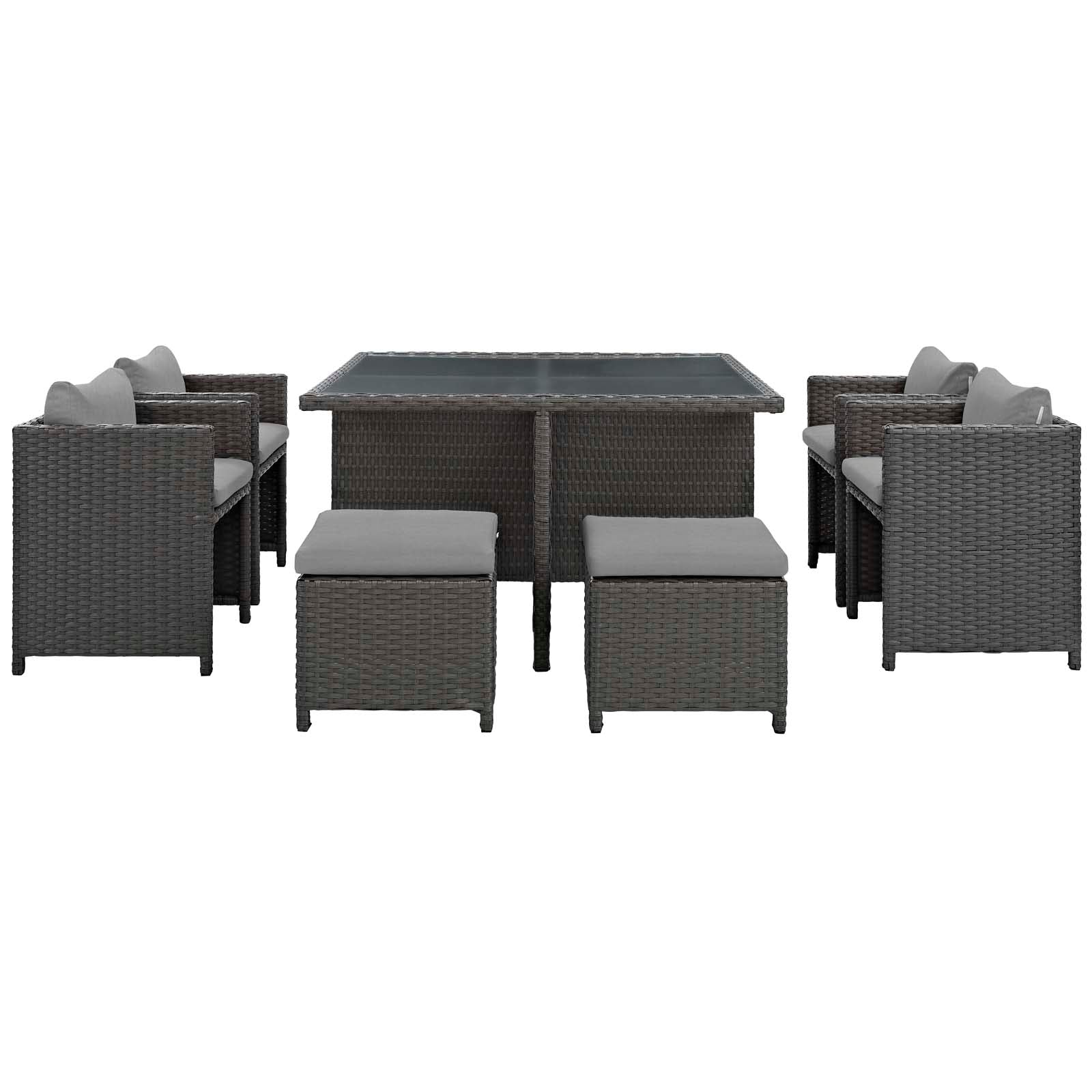Modway Outlet Sojourn 9 Piece Outdoor Patio Sunbrella? Dining Set by Modway Outdoor Furniture Furniture Canvas Gray - EEI-1946-CHC-GRY-SET