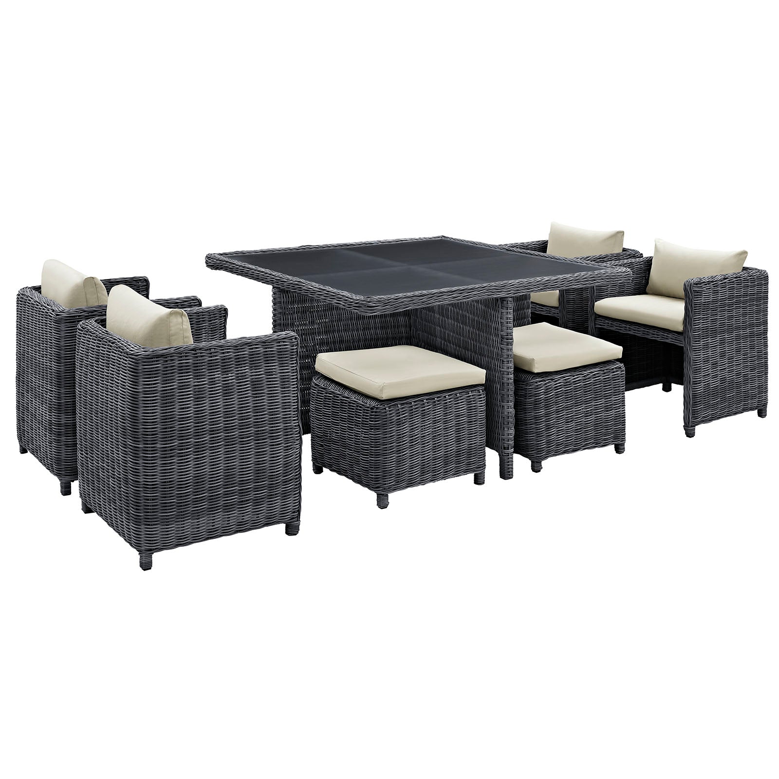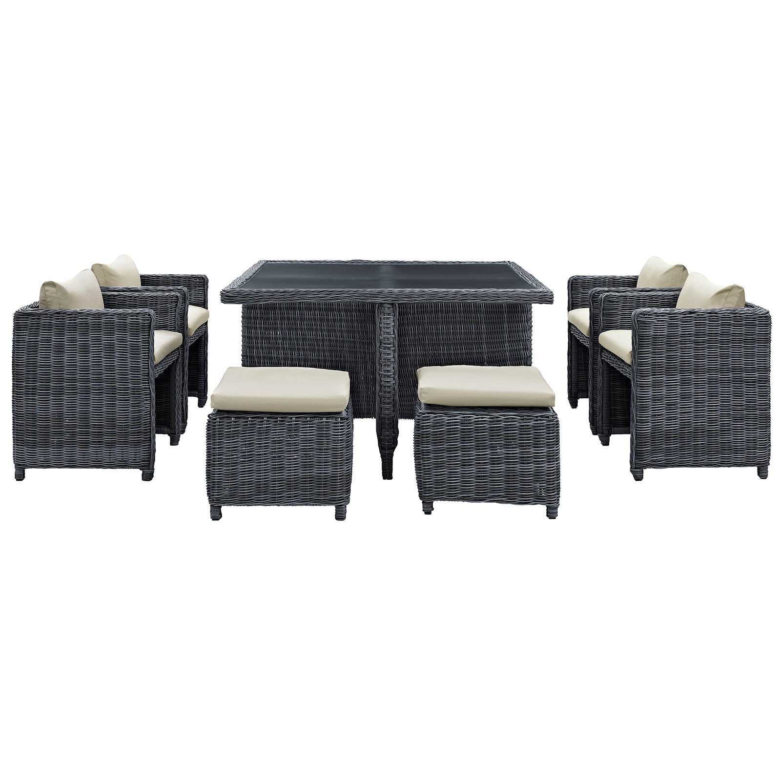 Modway Outlet Summon 9 Piece Outdoor Patio Sunbrella? Dining Set by Modway Outdoor Furniture Furniture Antique Canvas Beige - EEI-1947-GRY-BEI-SET