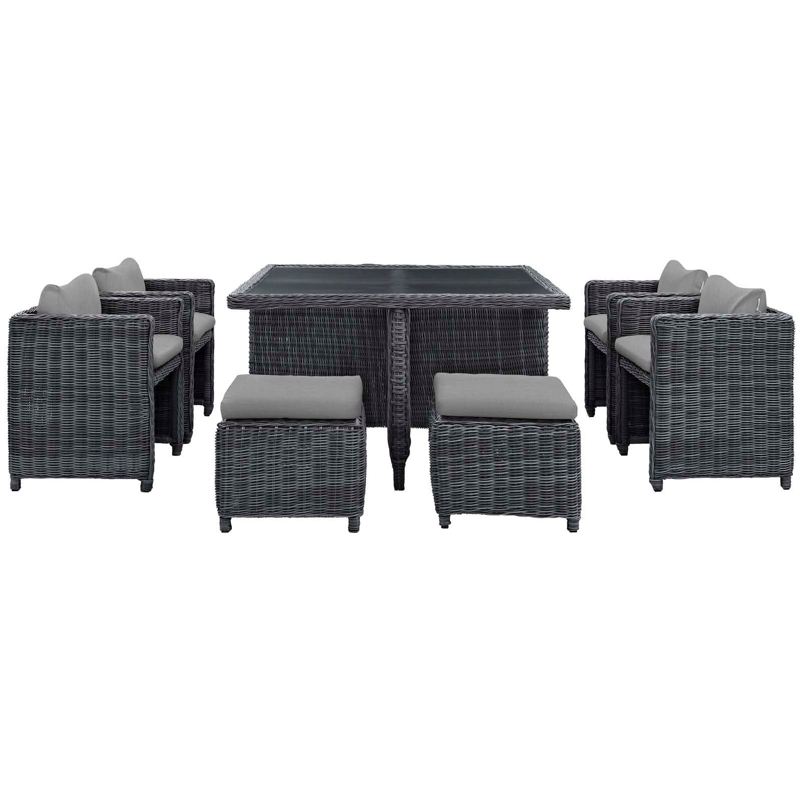 Modway Outlet Summon 9 Piece Outdoor Patio Sunbrella? Dining Set by Modway Outdoor Furniture Furniture Canvas Gray - EEI-1947-GRY-GRY-SET