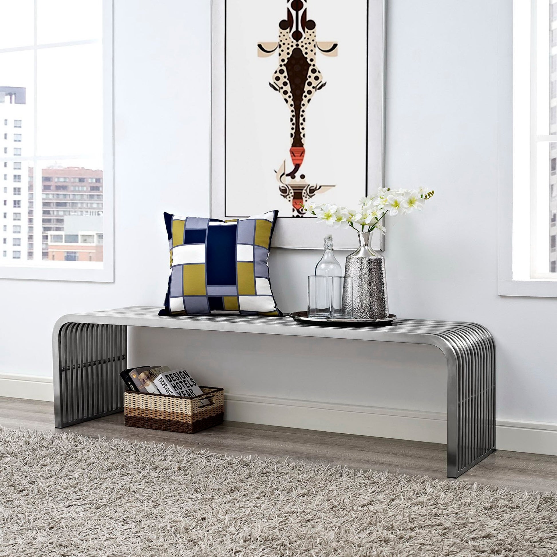 Modway - Pipe 60" Stainless Steel Bench by Modway Living Room Benches and Stools Silver - EEI-2103-SLV