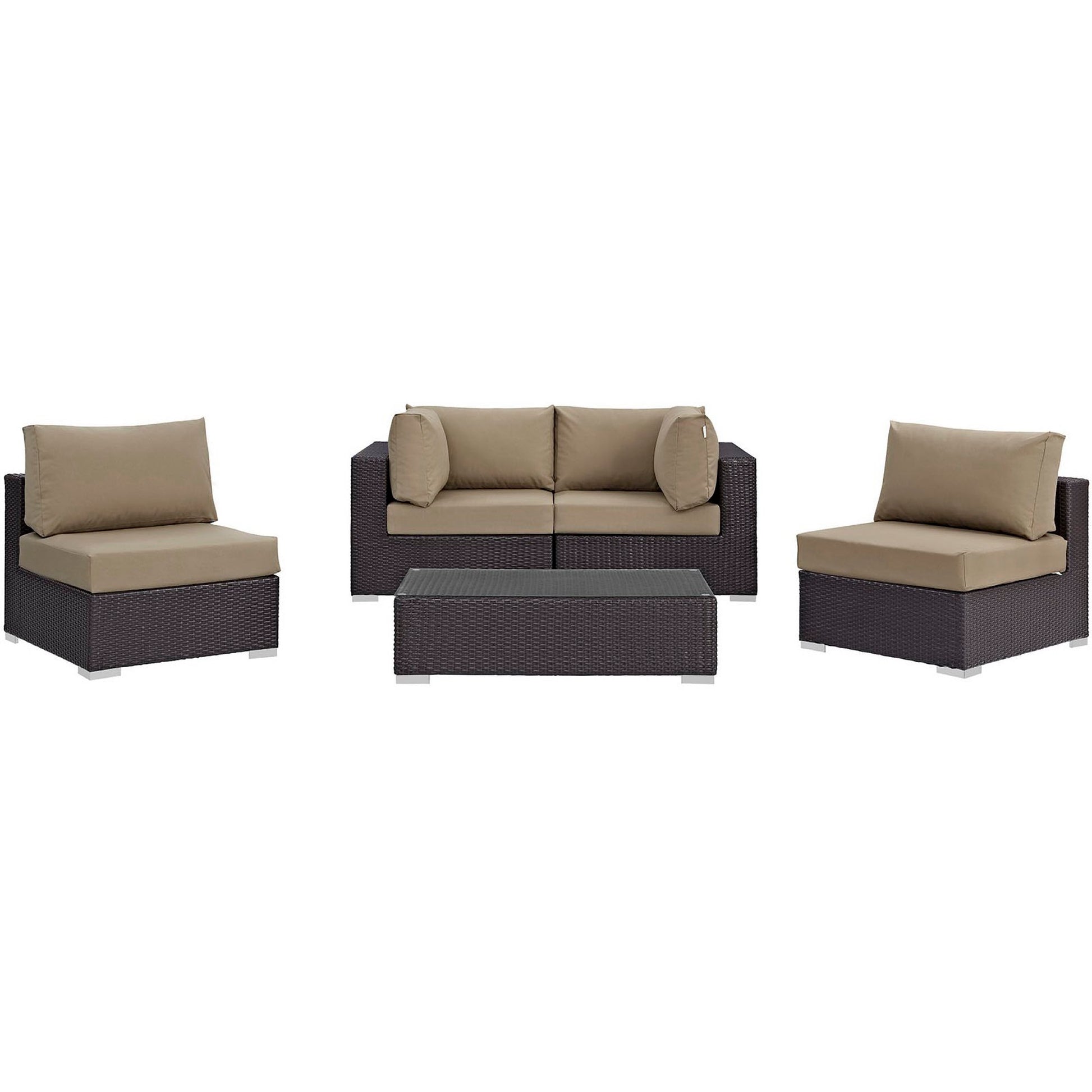 Modway - Convene 5 Piece Outdoor Patio Sectional Set by Modway Outdoor Furniture Sofa Sectionals Gray - EEI-2163-EXP-MOC-SET