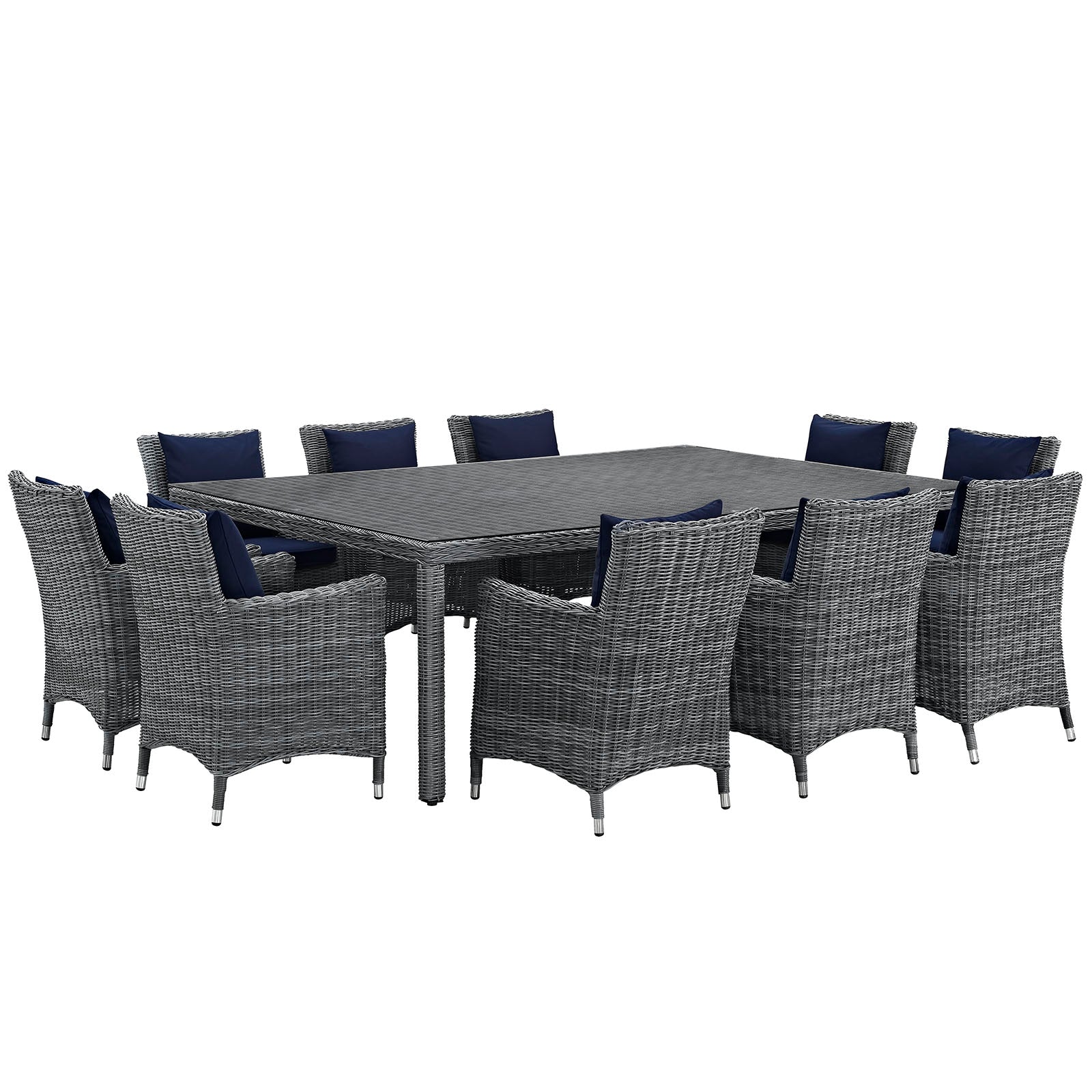 Modway Outlet Summon 11 Piece Outdoor Patio Sunbrella? Dining Set by Modway Outdoor Furniture Furniture Canvas Navy - EEI-2333-GRY-NAV-SET