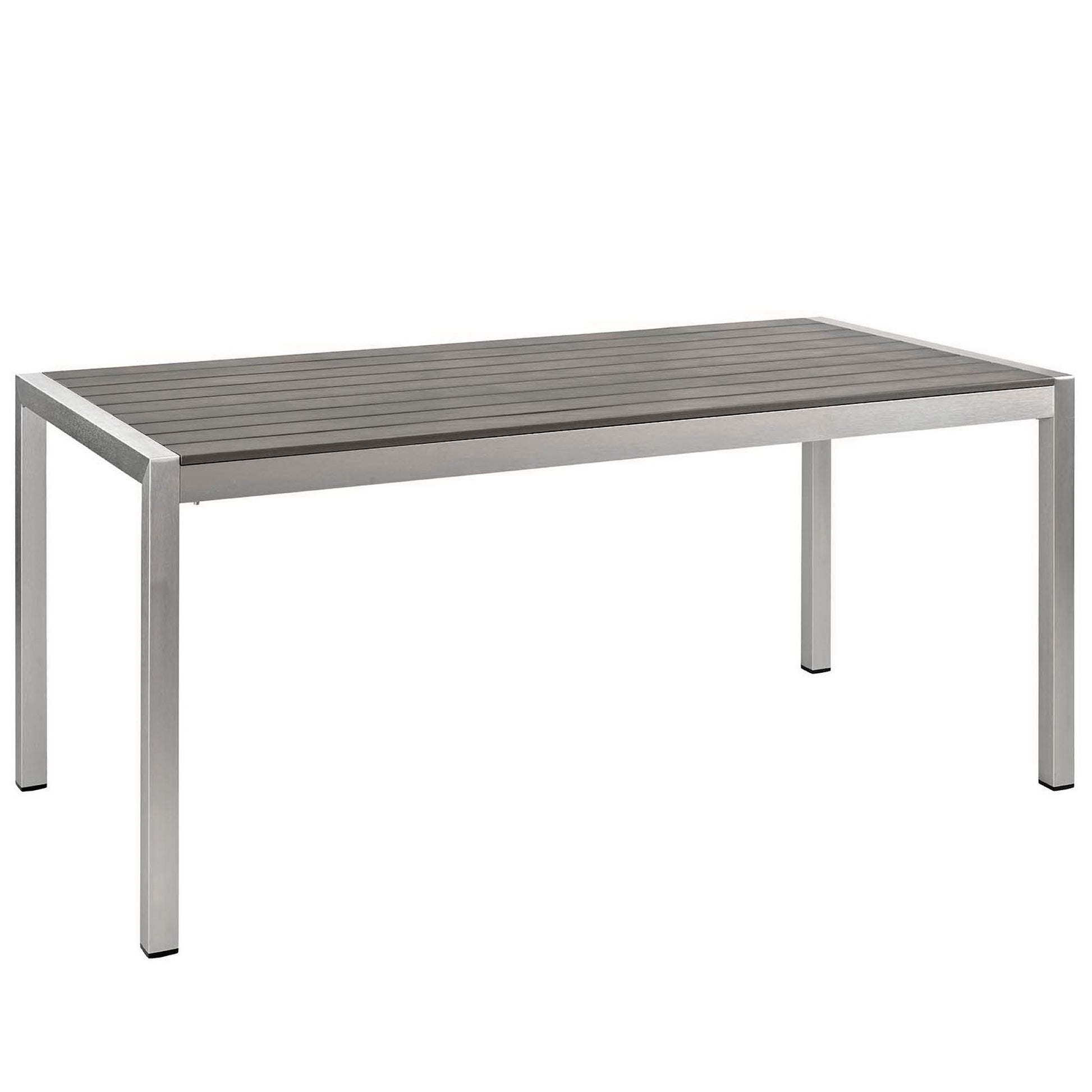 Use:Enjoy your patio or backyard leisure time with the strong and durable Shore Outdoor Dining Set. Made with an anodized brushed aluminum frame and non-marking black plastic foot caps, Shore features tone-on-tone grays with wood accents on the paneling for a chic and minimalist look. The Shore Outdoor Dining Set complements your casual gatherings with a look and functionality that you can rely on.