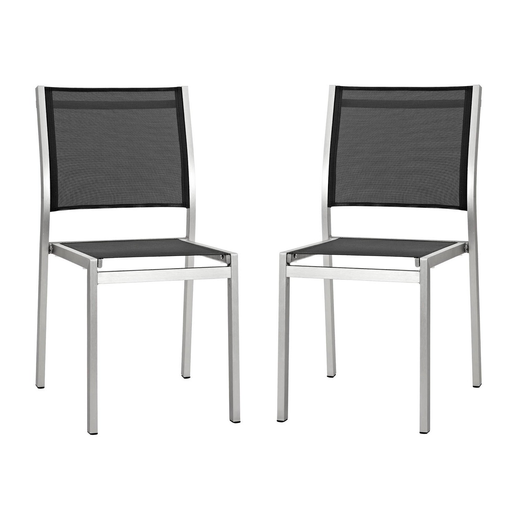 Modway Outlet Shore Outdoor Patio Aluminum Side Chair Set of 2 by Modway Outdoor Furniture Furniture Silver Black - EEI-2585-SLV-BLK-SET