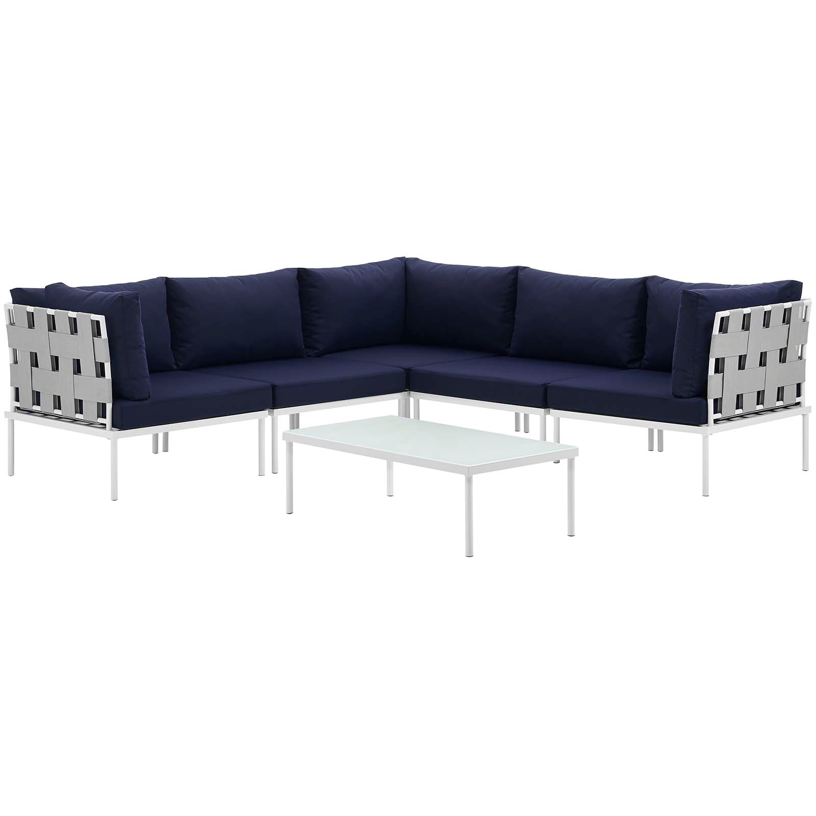 Modway Outlet Harmony 6 Piece Outdoor Patio Aluminum Sectional Sofa Set by Modway Outdoor Furniture Furniture White Navy - EEI-2627-WHI-NAV-SET
