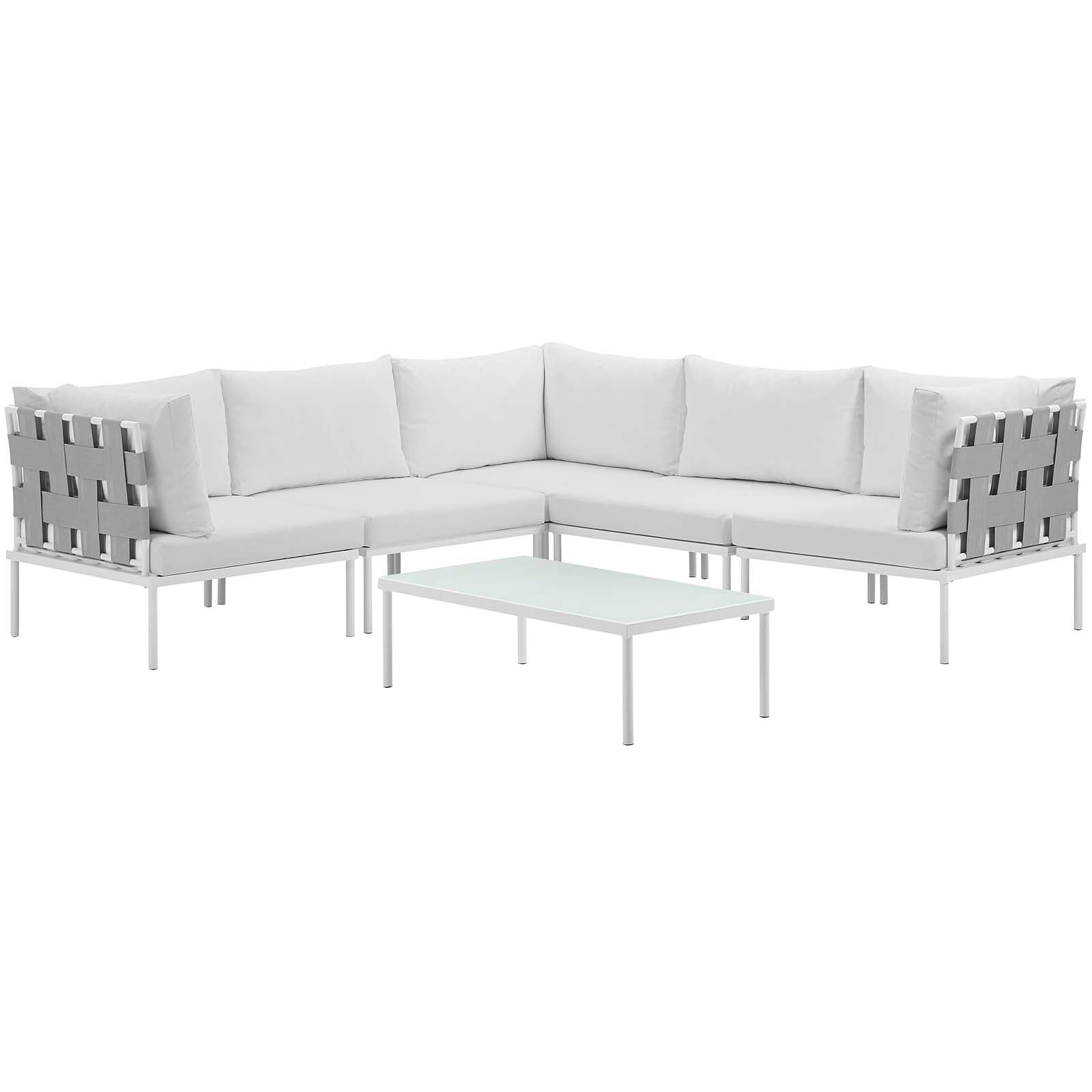 Modway Outlet Harmony 6 Piece Outdoor Patio Aluminum Sectional Sofa Set by Modway Outdoor Furniture Furniture White White - EEI-2627-WHI-WHI-SET