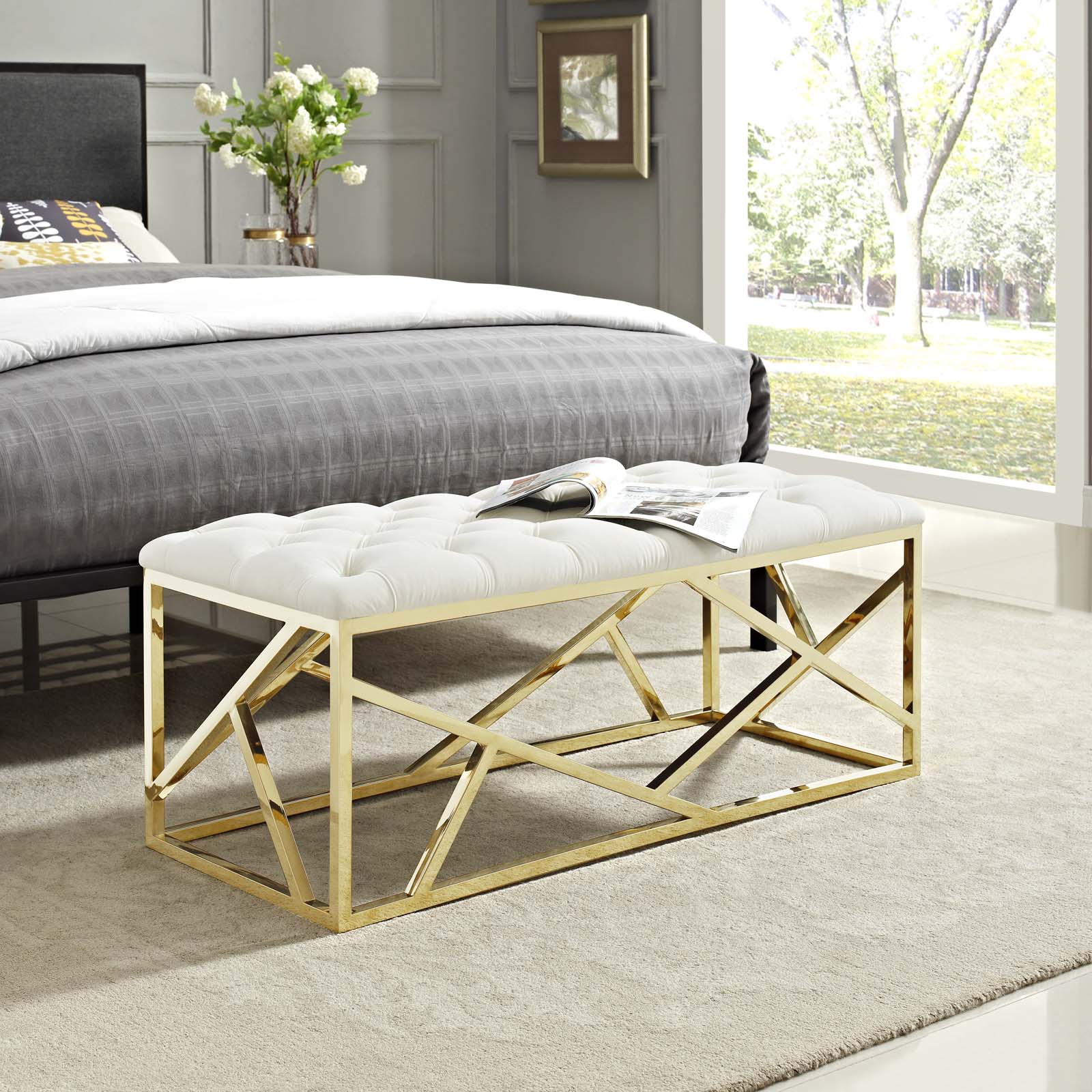 Modway Outlet Intersperse Bench by Modway Living Room Furniture Gold Ivory - EEI-2847-GLD-IVO