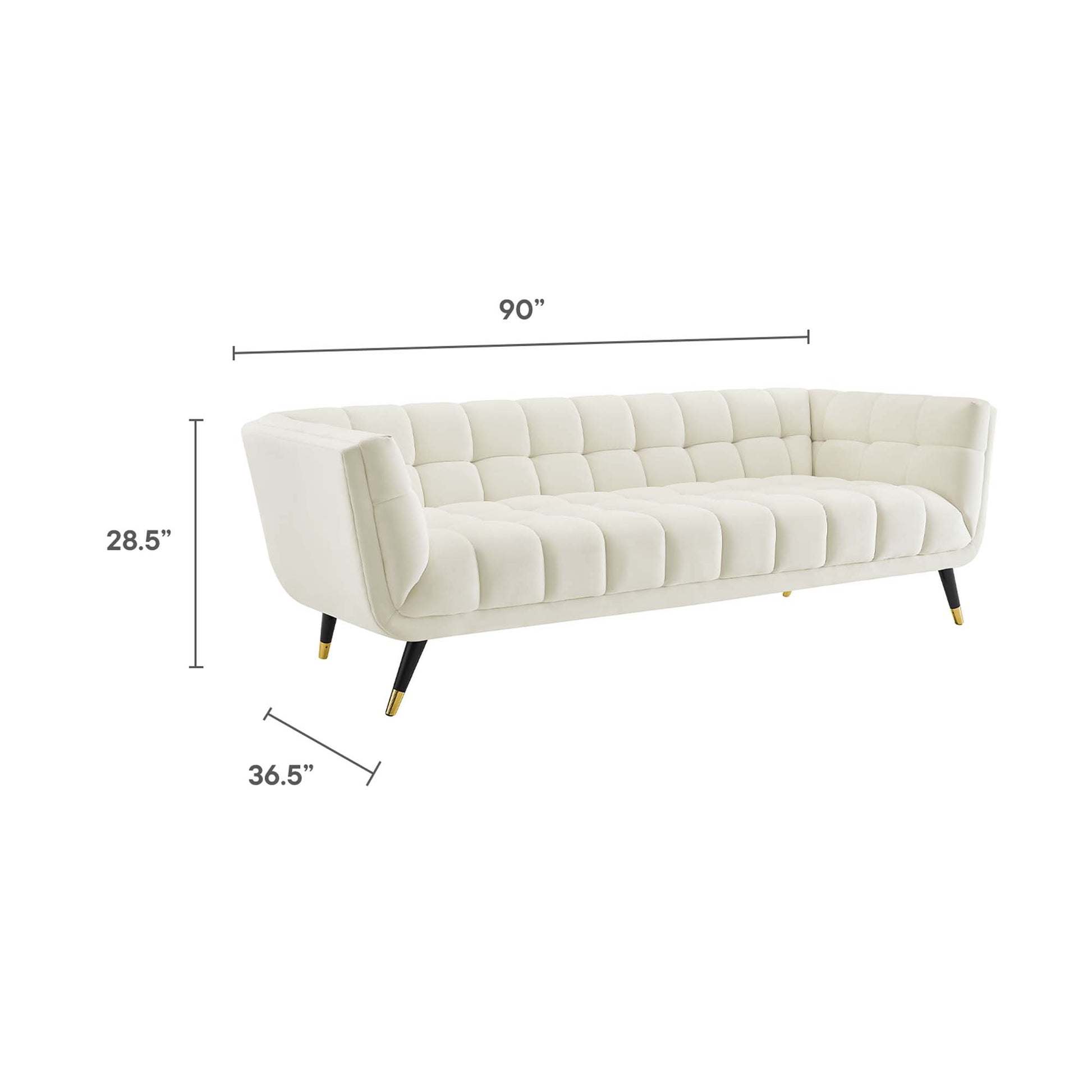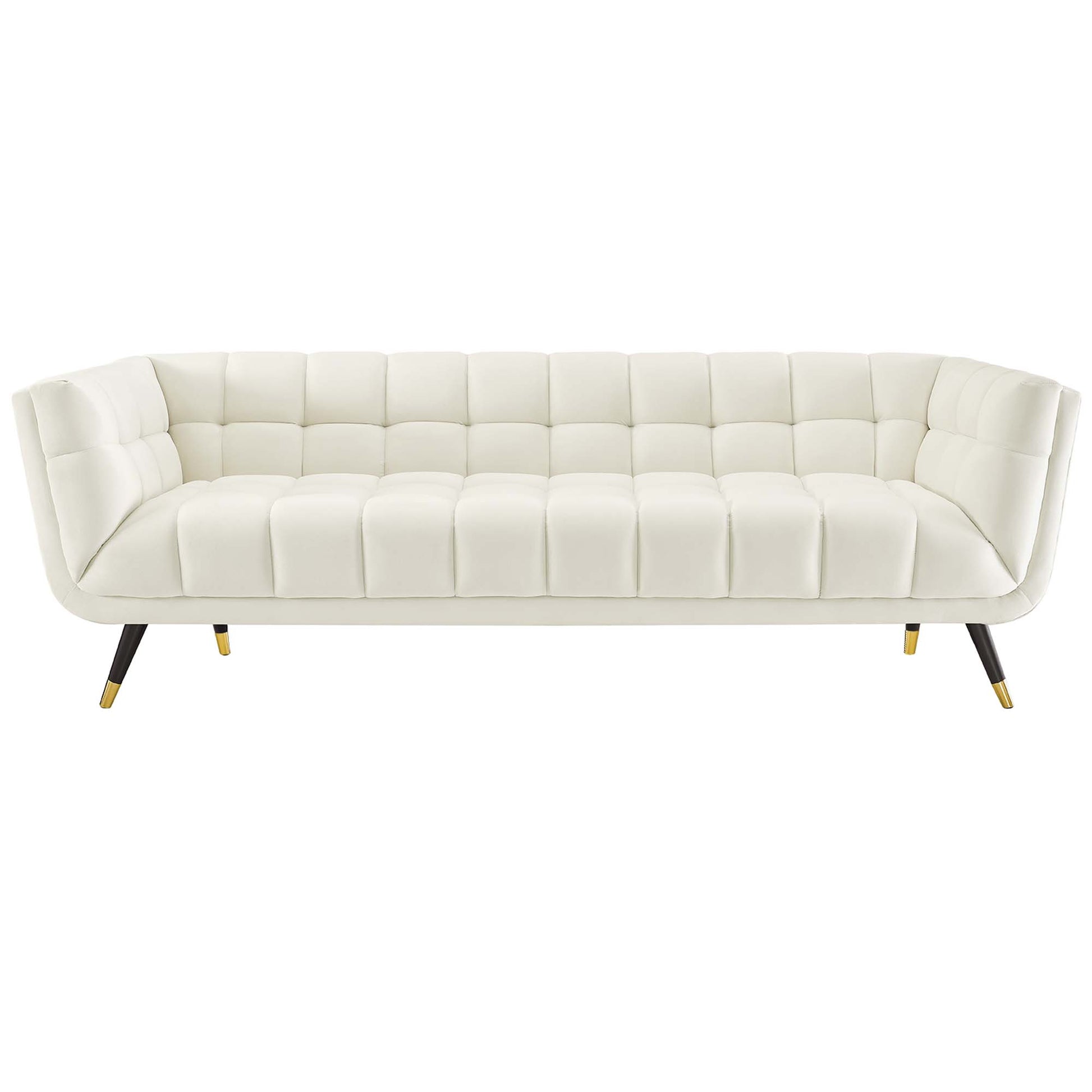Use:Embolden your living room d?cor with Adept Performance Velvet Sofa. Featuring a blend of chic, contemporary, and mid-century modern design, Adept's broad profile, deep seating, generous tufting, stain-resistant performance velvet polyester upholstery, flared armrests, and subtle metal accents imbue rich detail and chic sophistication. Enjoy the plush comfort of the Adept sofa while lounging with friends and family. Resting atop a splayed black birchwood frame with gold metal end caps, Adept is a striking addition to the home or apartment. Sofa Weight Capacity: 1322 lbs.,Chic Mid-Century Modern Sofa