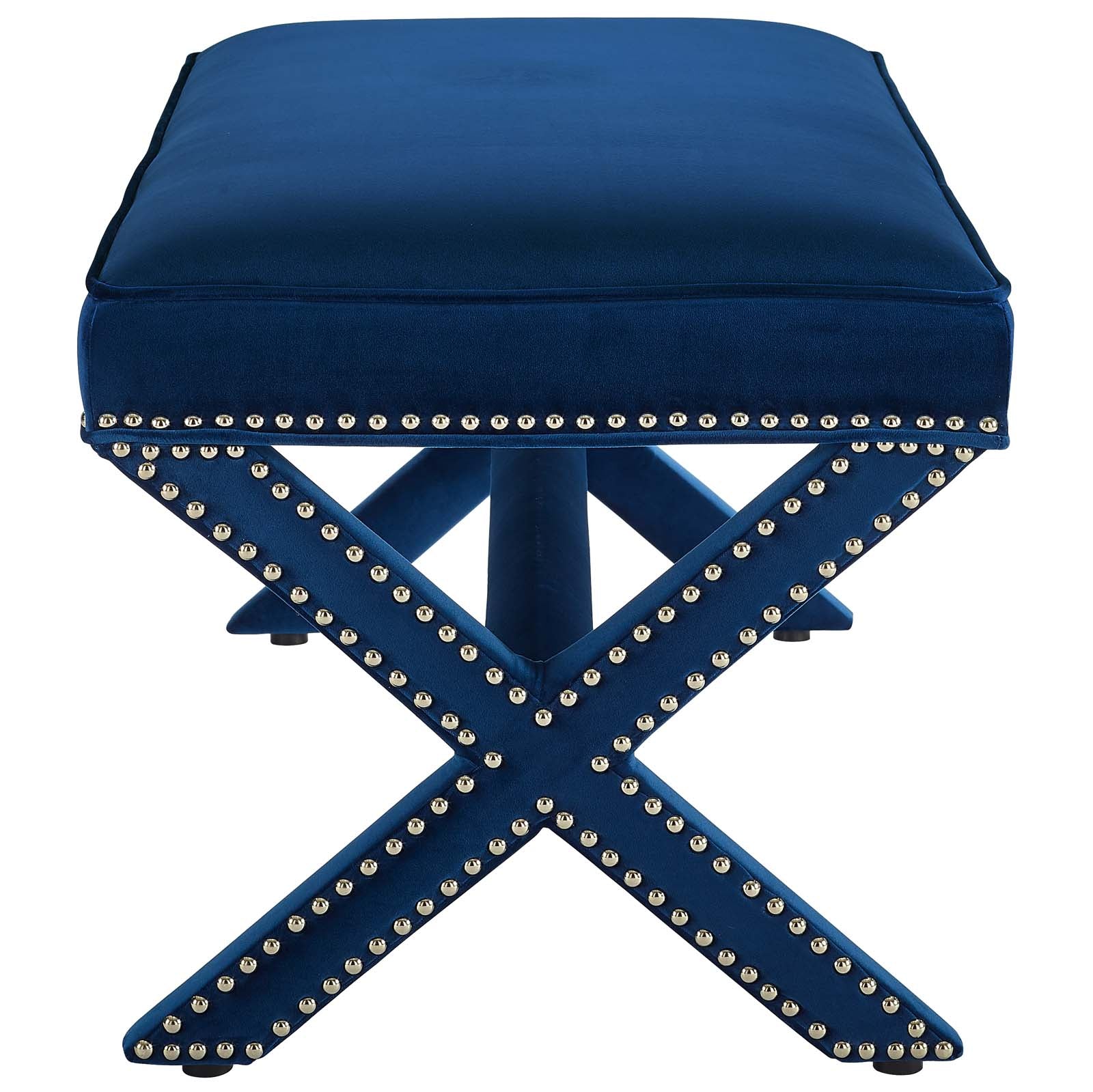 Use:Add charm to your home or apartment d?cor with the Rivet Performance Velvet Accent Bench. Featuring timeless nailhead trim, an elegant X-base frame, and surrounded by stain-resistant performance velvet fabric with dense foam padding, Rivet is a perfectly soft and cozy bench for the chic modern lifestyle. Rivet is available in a variety of engaging colors and is the perfect addition to bed, living, and lounge rooms. Bench Weight Capacity: 331 lbs,Chic Modern Upholstered Fabric Bench