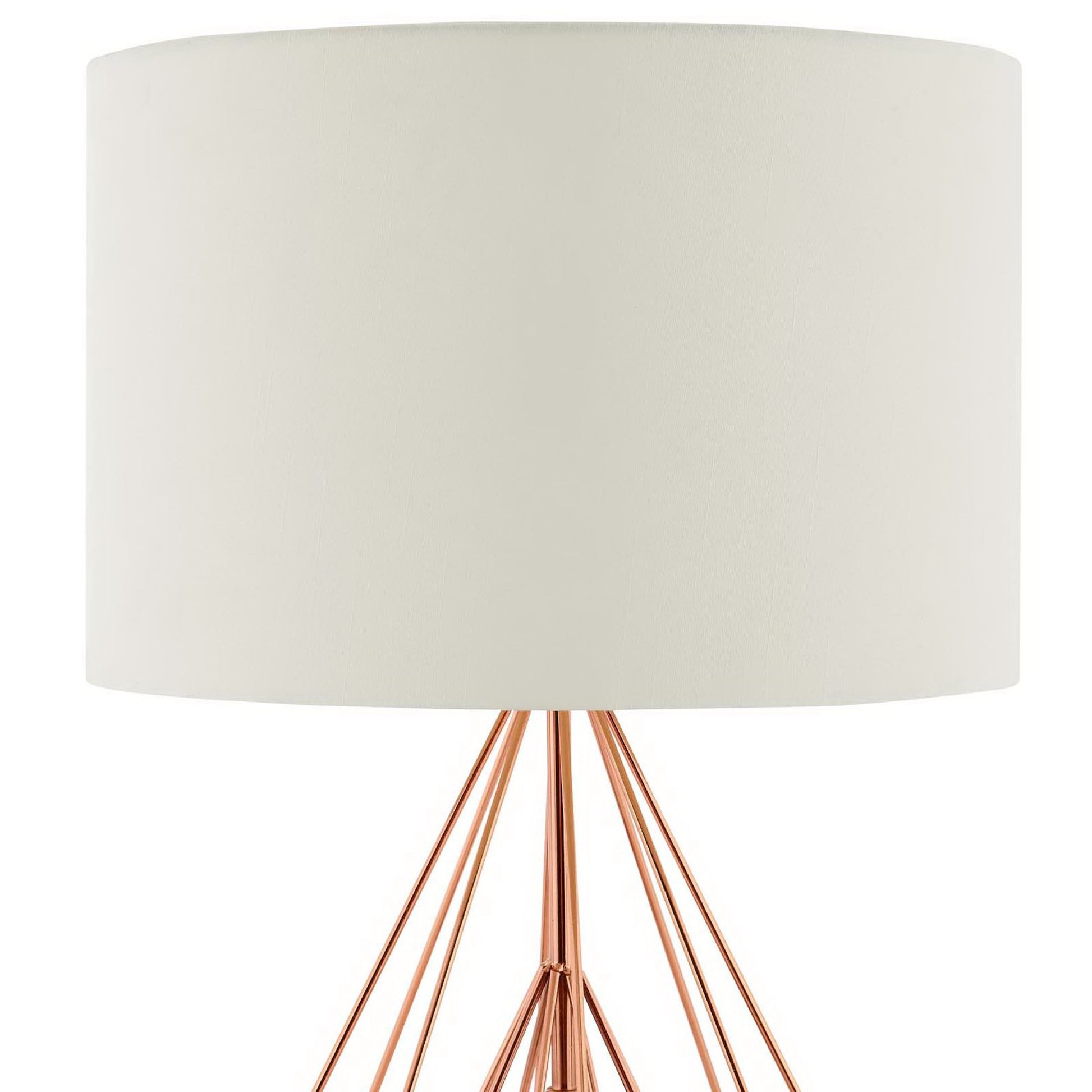 Use:Precious artfully portrays geometric form in this delightful modern table lamp. Blending an open concept diamond-shaped frame, and cream fabric drum shade, Precious takes one E26 60W bulb (not included). This stylish table lamp is crafted with rose gold steel wire making it a perfect fit for your bedside table, office desk, or entryway console.,Contemporary Modern Table Lamp