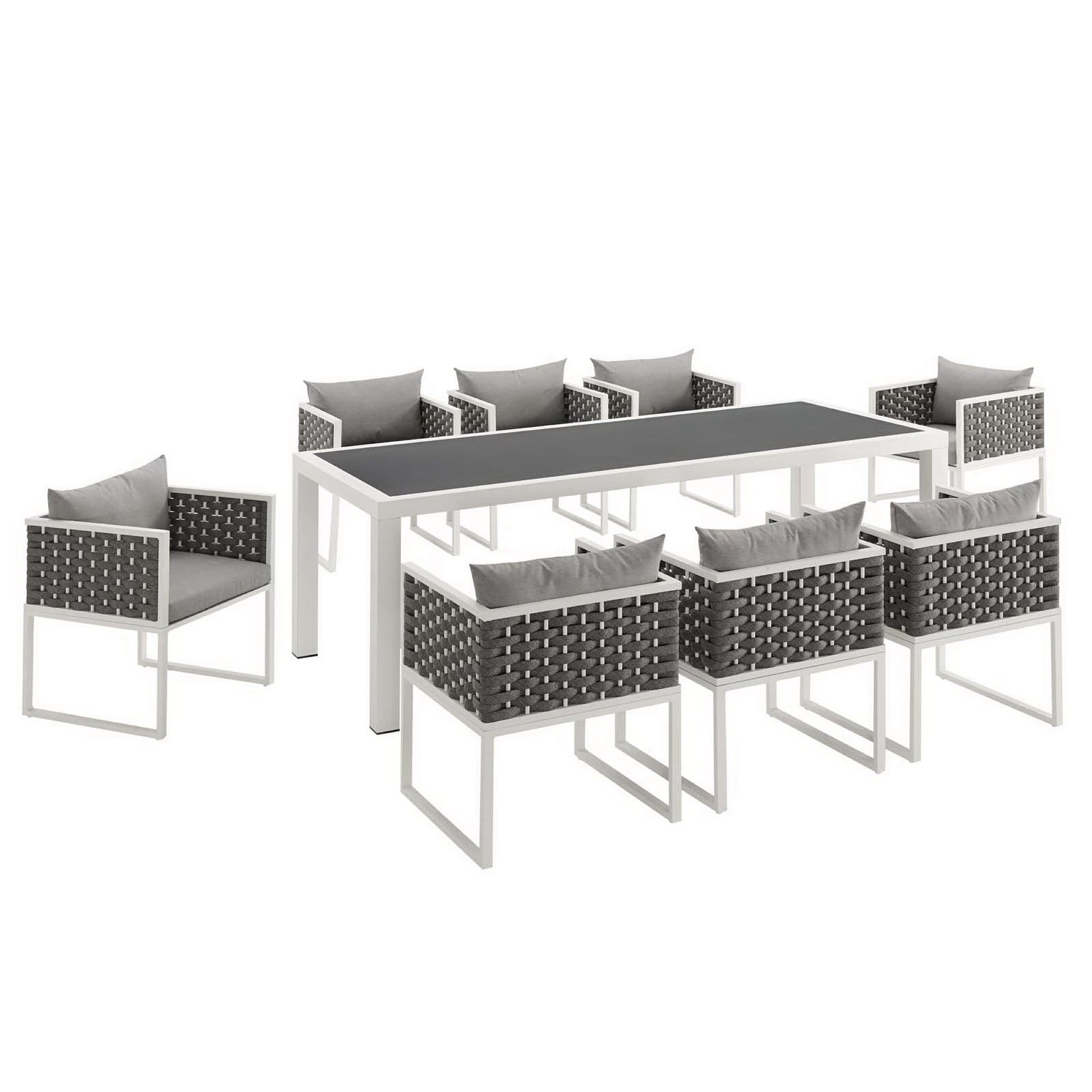 Modway Outlet Stance 9 Piece Outdoor Patio Aluminum Dining Set by Modway Outdoor Furniture Furniture White Gray - EEI-3186-WHI-GRY-SET