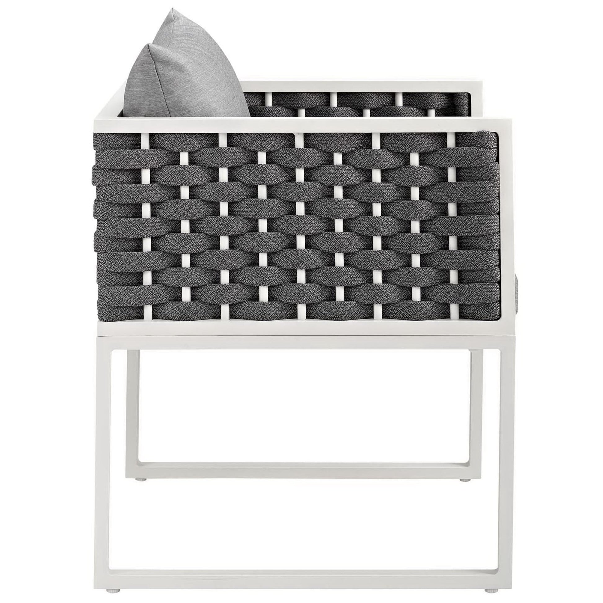 Use:Gather family and friends for pleasant weather and good conversation with the Stance Outdoor Collection for an exceptional al fresco dining experience. Boasting a contemporary modern look, Stance features woven polyester fabric rope seat back and flared powder-coated aluminum frame, waterproof all-weather fabric cushions, and a 90.5" rectangle table with a spray stone glass surface for all your entertaining and casual dining needs. A versatile set designed for long-lasting durability, the Stance Collection can be mixed and matched and effortlessly arranged to fit the spontaneous needs of you and your guests. Chair Weight Capacity: 331 lbs.,Contemporary Outdoor Dining Set