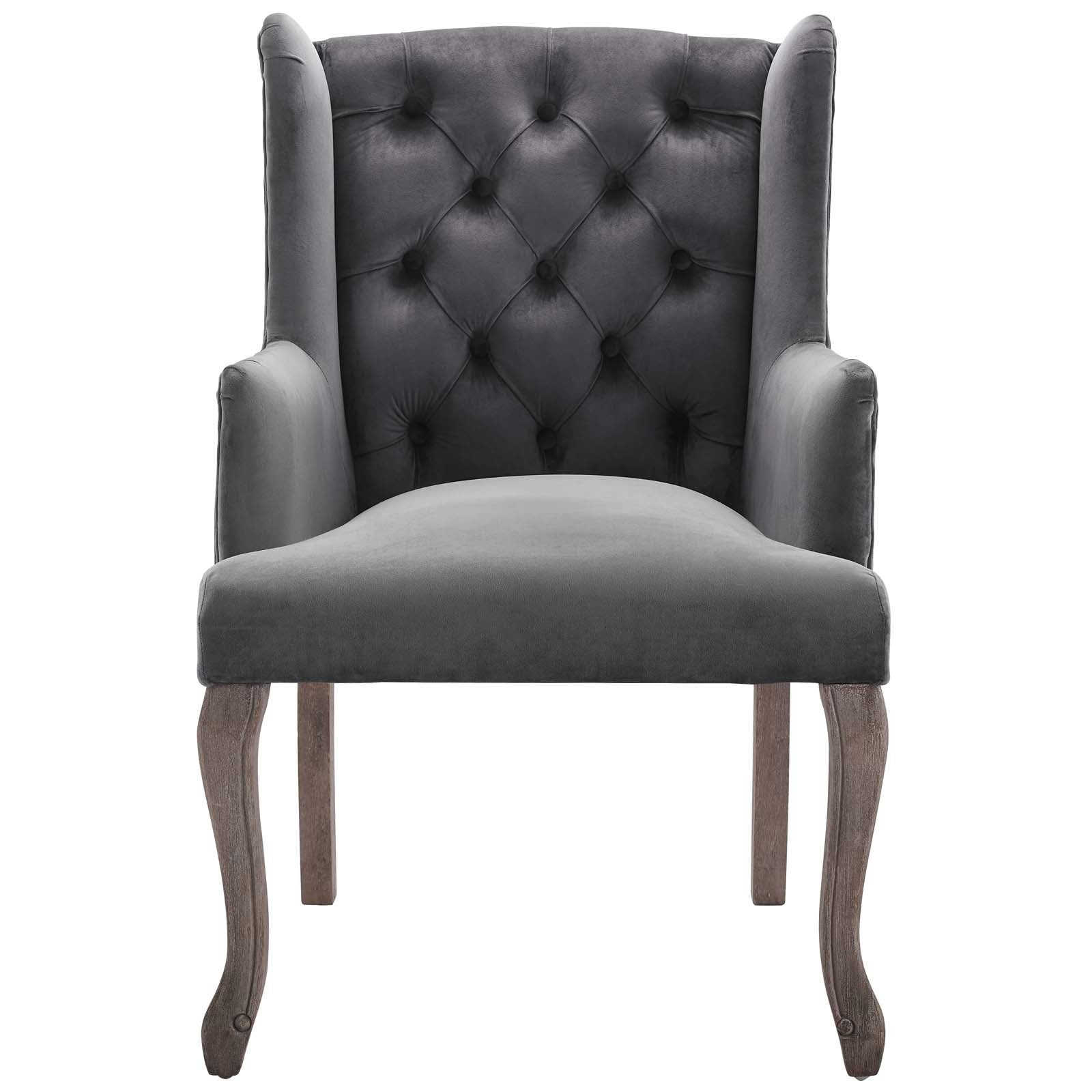 Modway Outlet Realm French Vintage Dining Performance Velvet Armchair by Modway Bar and Dining Furniture Gray - EEI-3366-GRY