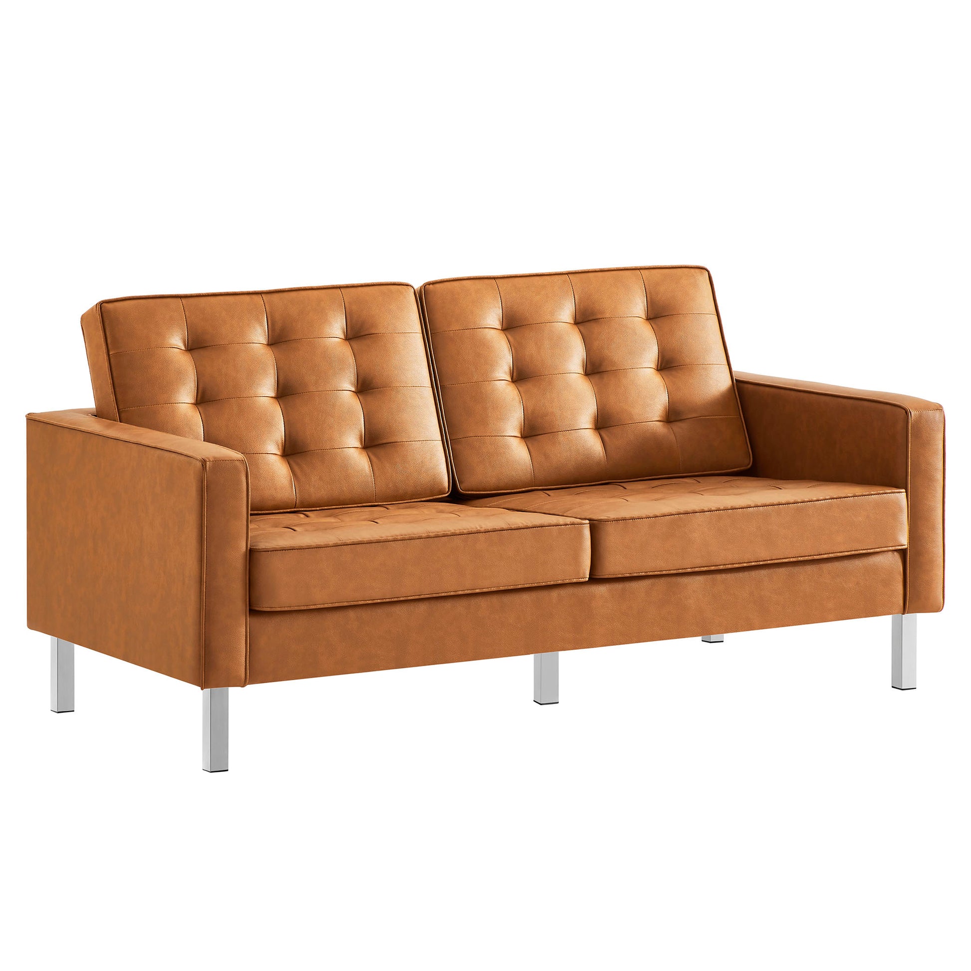 Modway Outlet Loft Tufted Vegan Leather Loveseat by Modway Living Room Furniture Silver Tan - EEI-3388-SLV-TAN