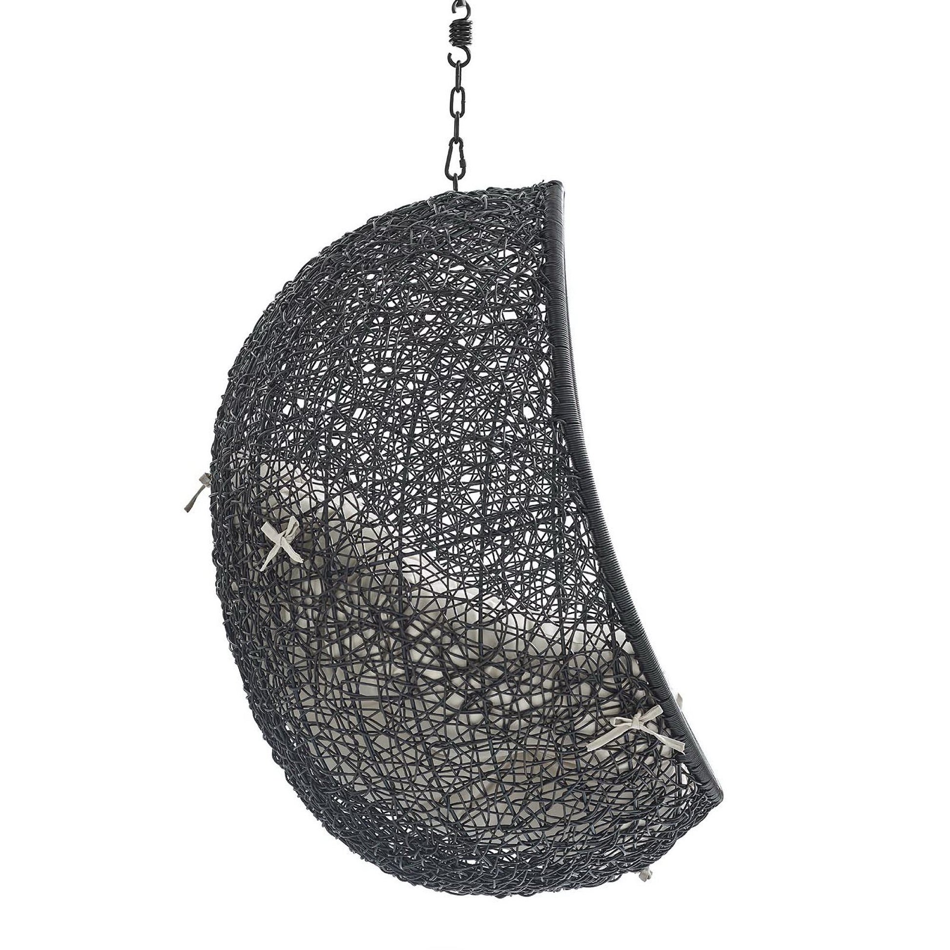 Use:Escape to an exotic island of serenity with the Encase Outdoor Patio Swing Chair. Made with a luxurious synthetic rattan weave and plush all-weather fabric cushion, Encase Outdoor Hanging Chair makes it easy to immerse yourself in a good book. Encase Patio Swing Chair comes with a sturdy powder-coated steel frame and adjustable 78.5? inch steel chain that works well to enliven your patio, backyard, porch, or poolside d?????cor. Stand-alone hanging swing chairs are also popularly used in indoor lounge, living, or bedroom spaces. Hide Swinging Chair is weather and UV resistant.