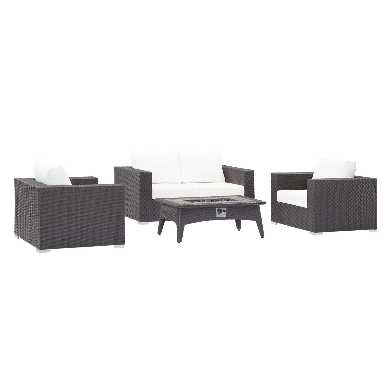 Modway Outlet Convene 4 Piece Set Outdoor Patio with Fire Pit by Modway Outdoor Furniture Furniture Espresso White - EEI-3725-EXP-WHI-SET
