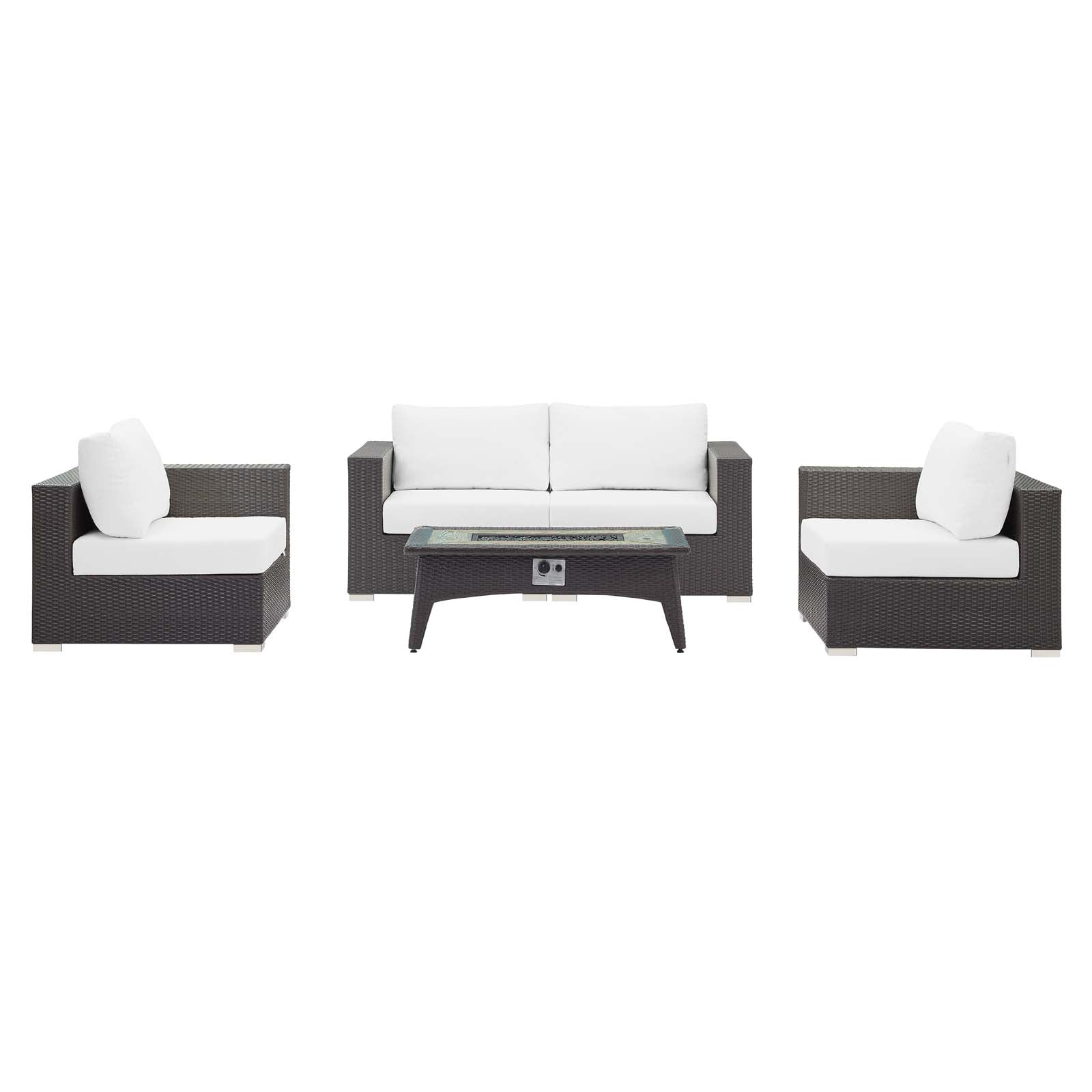 Modway Outlet Convene 5 Piece Set Outdoor Patio with Fire Pit by Modway Outdoor Furniture Furniture Espresso White - EEI-3728-EXP-WHI-SET