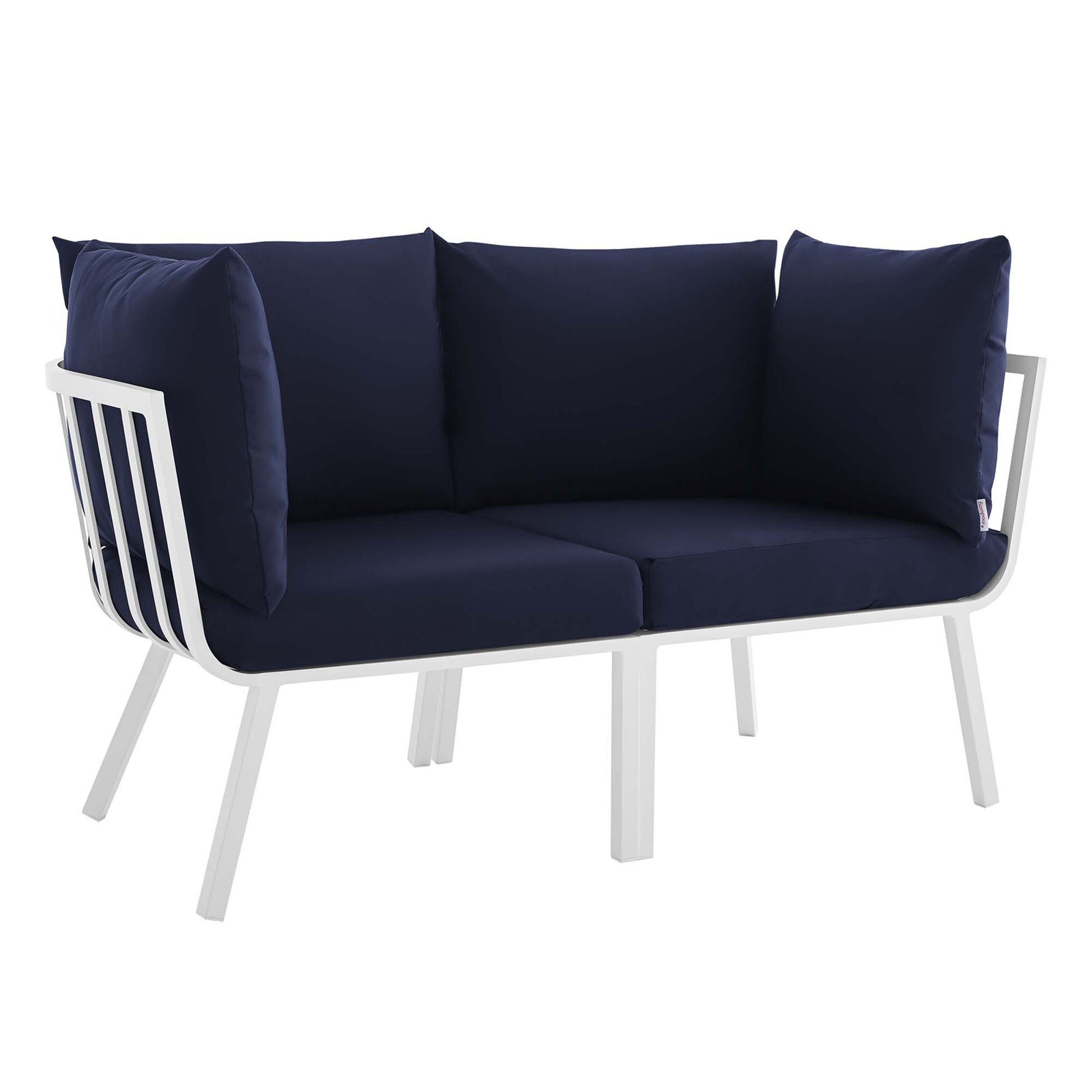 Use:Refresh your outdoor decor with the Riverside Outdoor Patio Aluminum Loveseat. Defined by a crisp, coastal style, this installment of the Riverside outdoor sectional sofa furniture collection features an open slatted back design, angled back legs, and plush 4" thick all-weather UV-resistant fabric cushions. Solidly constructed with a powder-coated aluminum frame, the Riverside outdoor loveseat will enhance the look of your patio, backyard, balcony, porch, deck, or poolside area. Includes foot caps. Seat Weight Capacity: 300 lbs,Outdoor Patio Loveseat